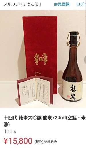 검색을 해본 결과 15,800엔으로 엄청나게 저렴한(?) 쥬욘다이가 올라와 있어서 진품은 맞는데 술을 다 마시고 남은 쥬욘다이 쥰마이 다이긴죠 류센의 빈 용기의 가격이었습니다.