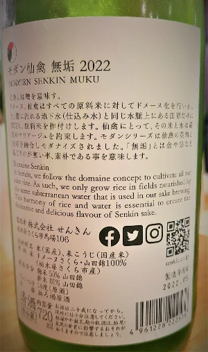 센킨 무쿠 (仙禽 無垢) 라벨 뒷면