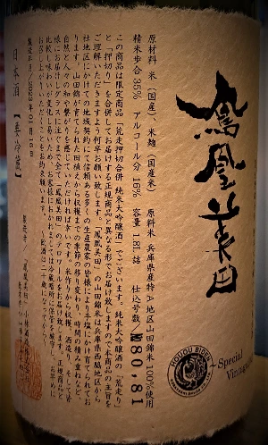 참고로 일본에서 가장 많은 사케 생산량을 자랑하는 곳은 하쿠츠루(白鶴)로 하루에 28만 병을 생산하니 호오비덴의 연간생산량은 하쿠츠루의 하루 생산량에도 미치지 못하는 것입니다.