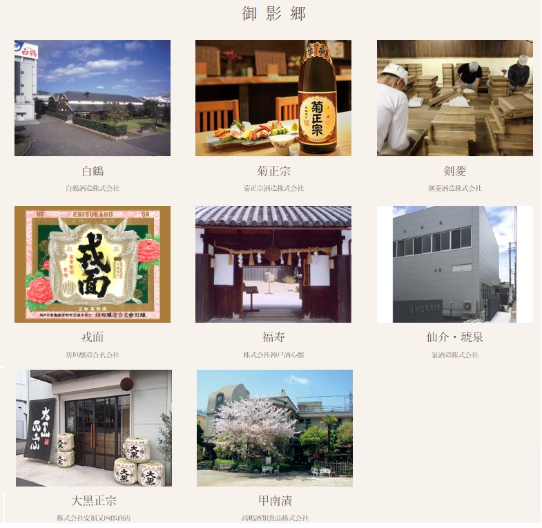 * 하쿠시카(白鹿) : 1662년 창업, 하쿠타카와 그 뿌리는 같고 2차대전 전에는 토지개발이나 금융업, 해운업 등 다양한 사업까지 했던 재벌 양조장