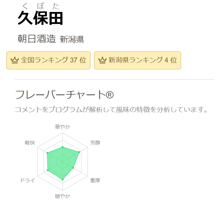 최고의 사케라 자부하면서 전국 37위이자 니가타 내에서도 4위에 랭크되어 있습니다.