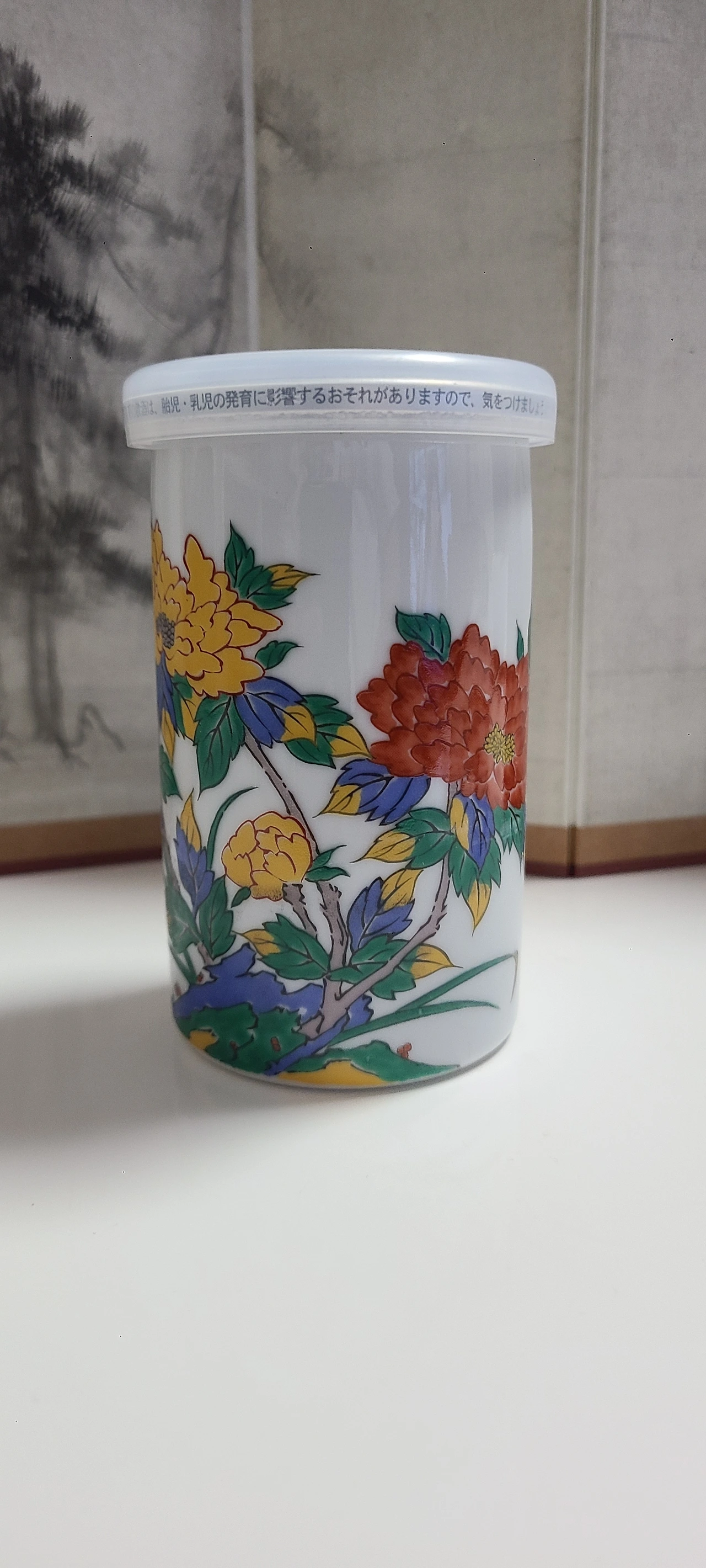 * 꽃과 전통적 문양 등을 넣어서 이마리야키라는 이 지역 도자기로 컵을 구성
