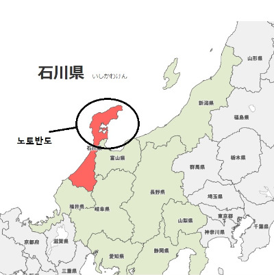 빨간색이 3대 토지, 파란색이 노토토지 - 홈페이지 인용