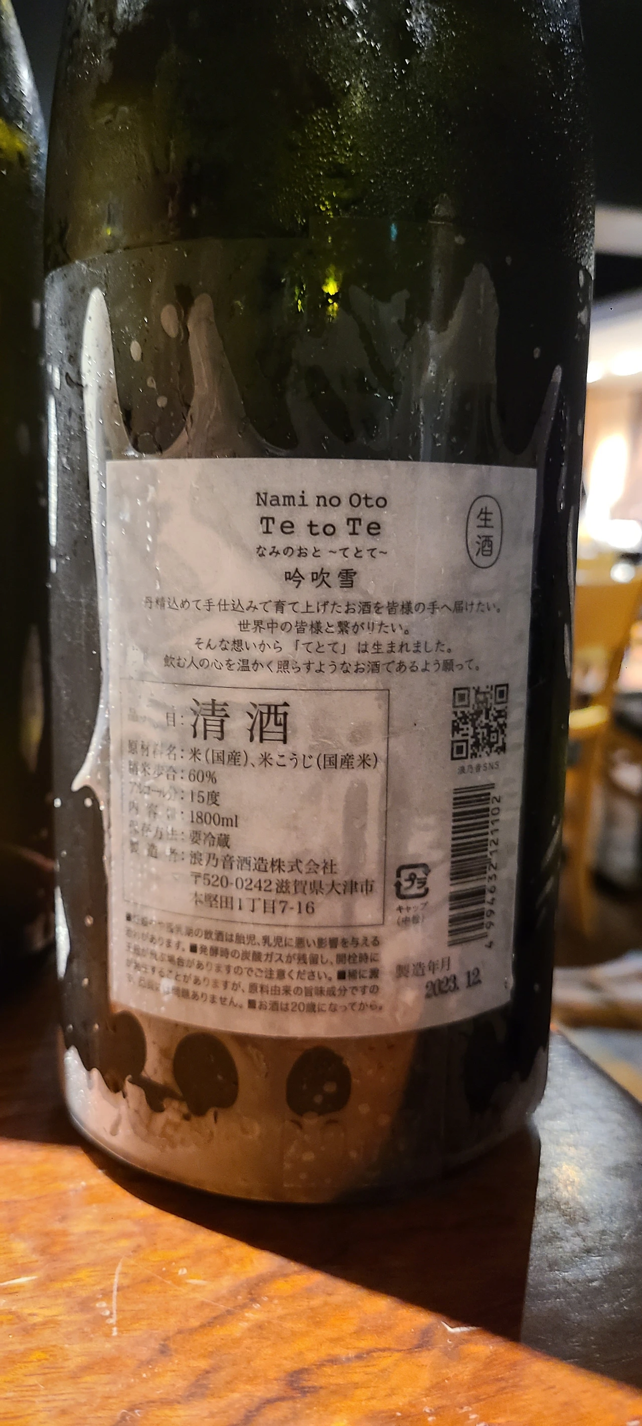 * 손과 손이라는 뜻의 테토테의 의미는 정성 들인 수작업의 사케를 손님의 손에 전달하겠다는 뜻