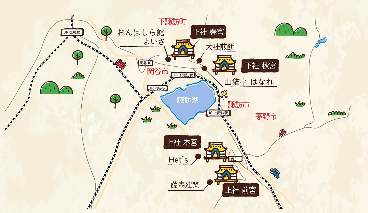 스와타이샤(諏訪大社)의 4개의 하부 신사 - 諏訪観光ナビ 인용