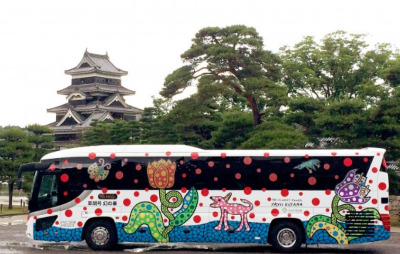 신주쿠와 마츠모토를 운행하는 고속버스에 그려진 쿠사마 작품 - 마츠모토시 미술관 인용