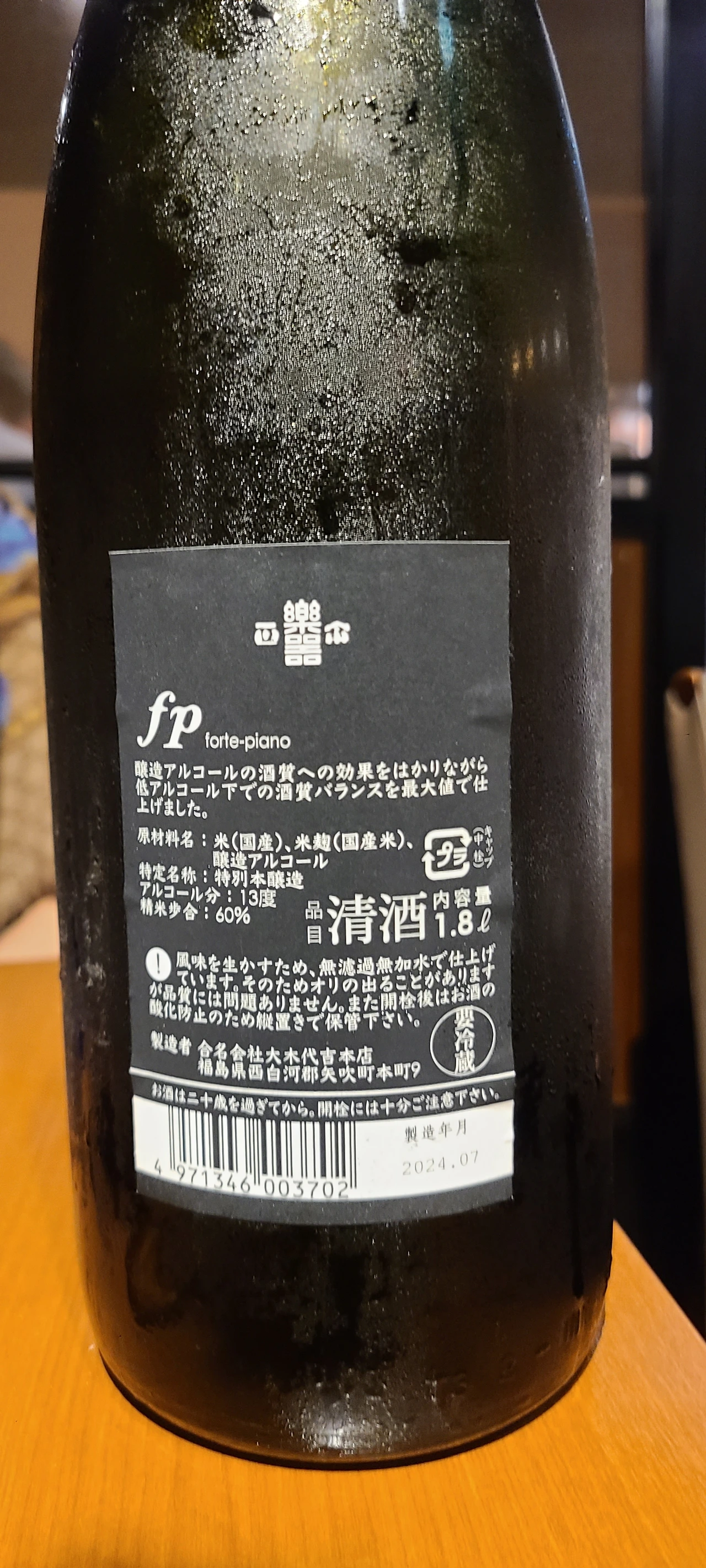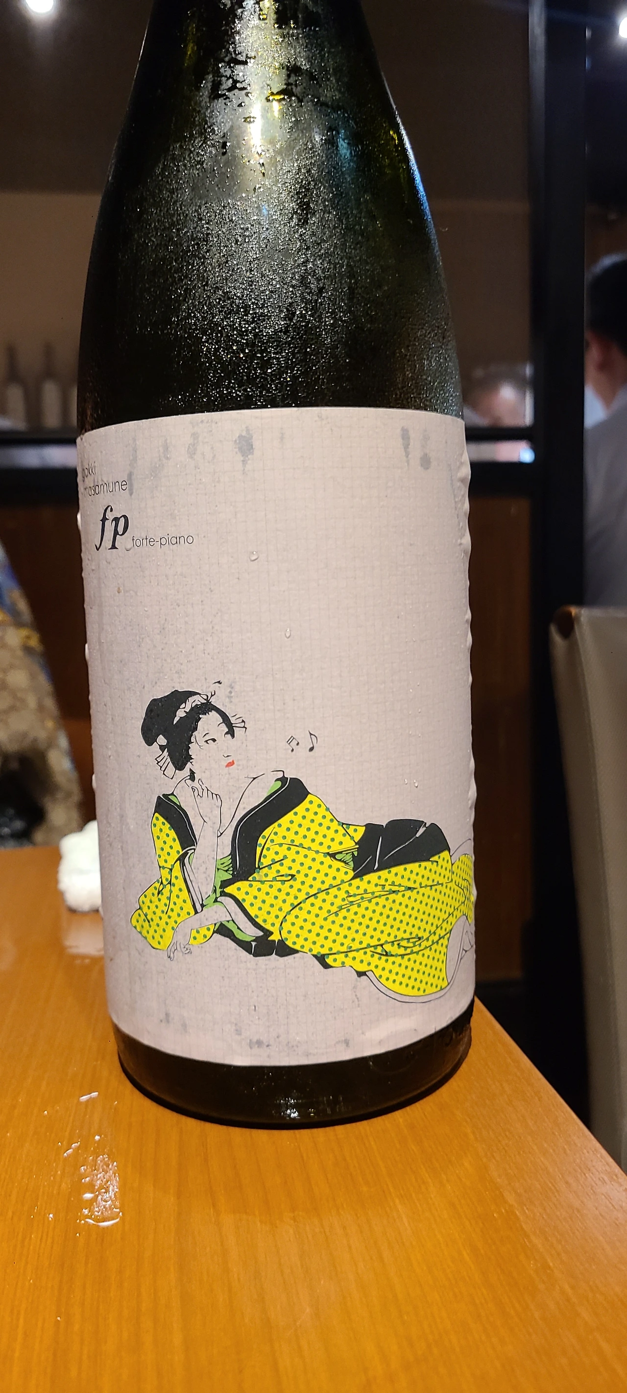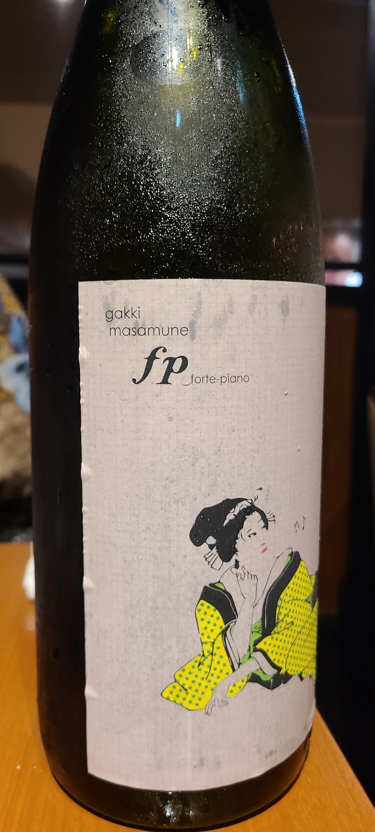 * 일반 각키 마사무네의 라벨에는 악기를 연주하는 키모노를 입은 여인이 등장하는데 이번 사케는 fp(Forte Piano - 포르테 피아노)버전으로 진짜 악상기호 표기와 라벨을 병행