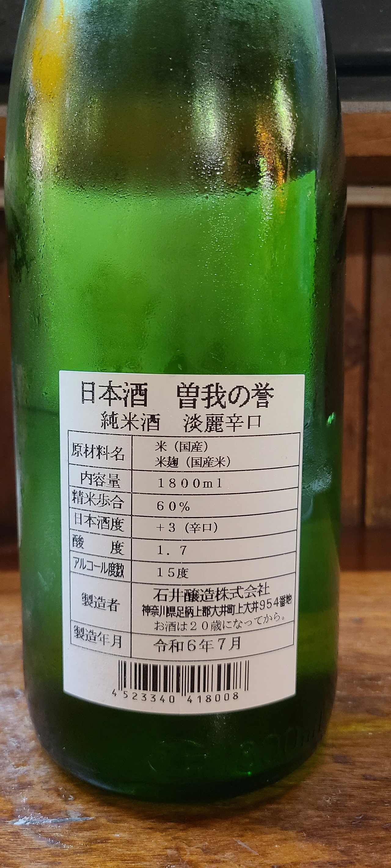 * 정미비율 60%, 니혼슈도 +3, 산도 1.7의 쥰마이슈