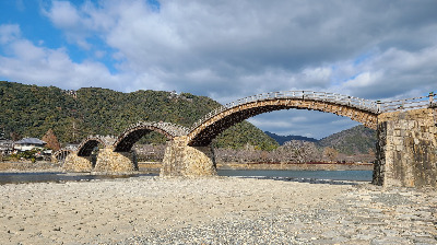 1673년에 만들어진 목조 아치 다리로 5개의 다리가 이어져 있어 도쿄의 니혼바시, 나가사키의 메가네바시와 더불어 일본 3대 명교(名橋)로 손꼽힙니다.