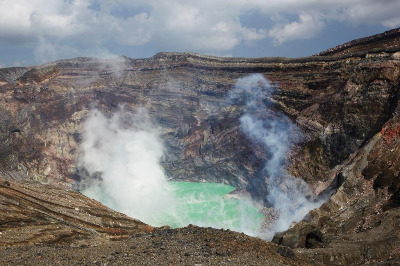 양조장에서 약 40여 킬로 떨어진 아소산은 동서 18킬로, 남북 25킬로, 한 바퀴 둘레가 약 100킬로의 어마어마한 칼데라를 가지고 있으며, 칼데라 안에만 2만 6천 명의 인구가 살고 있고, 철도와 국도가 정비되어 있습니다. 9만 년 전의 이 아소산 대분화 때 흘러나온 화쇄류가 만들어 낸 암반층이 풍부한 지하수를 생성시켰고, 이로 인해 수도꼭지만 틀면 생수가 나온다는 쿠마모토의 물은 좋은 사케를 빚어냄에 있어서 핵심 역할을 담당하고 있습니다.