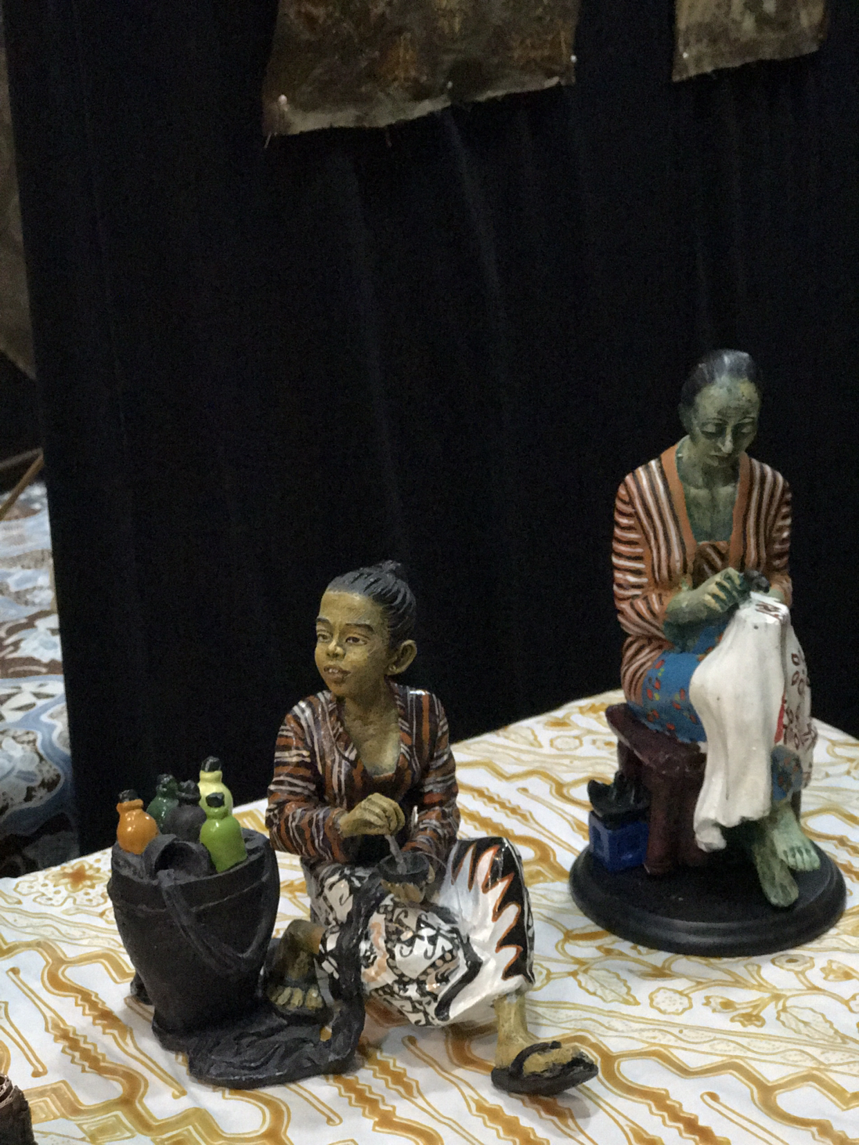 (자무 파는 여인과 바틱 그리는 여인 / 바틱 제작 도구들)