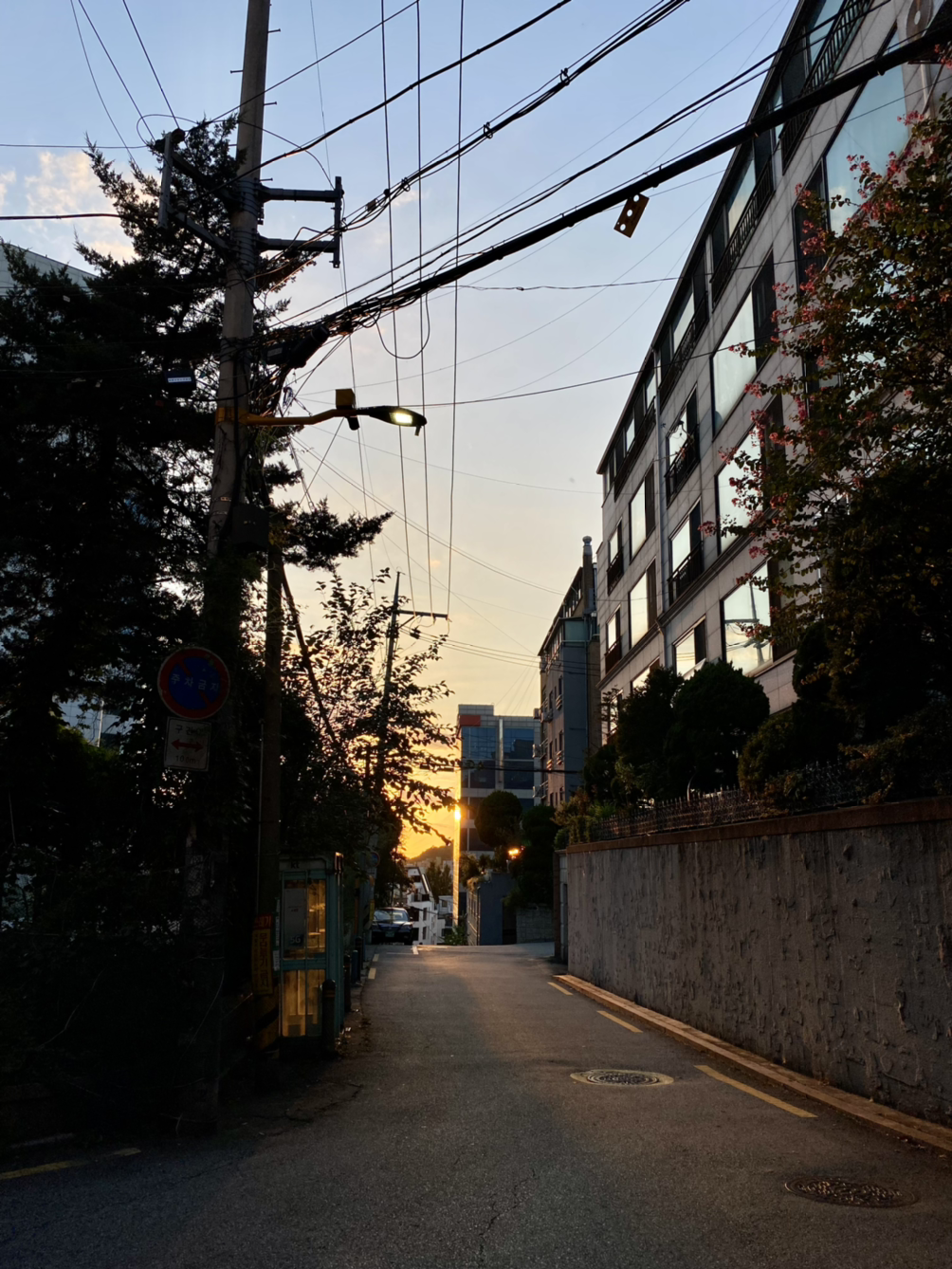 해질 무렵, 어느 누군가에게는 노곤한, 또 다른 누군가에게는 뿌듯한 하루가 지나가는 오후의 풍경. 우리 부부는 이 길을 산책 코스로 자주 찾는다.