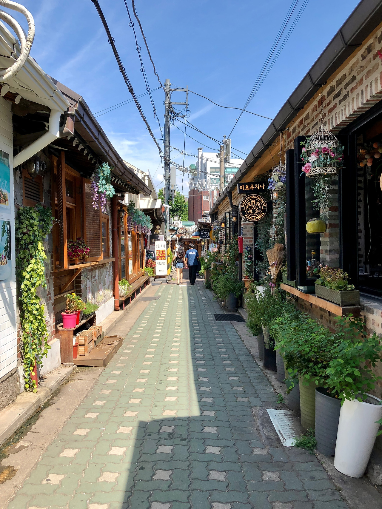 뜨거운 여름 한 낮, 두 눈을 바로 뜨기 어려울 정도로 내리쬐는 여름 햇볕을 피해 그늘 찾기에 정신이 없었던 우리 부부와 달리, 저만치 앞에서 두 손을 맞잡고 걸어가고 있는 젊은 커플은 두 손 꼭 맞잡고, 익선동의 분위기를 천천히 익히는 듯 이곳저곳 둘러보며 여유롭게 걸어가고 있는 것이 아닌가.