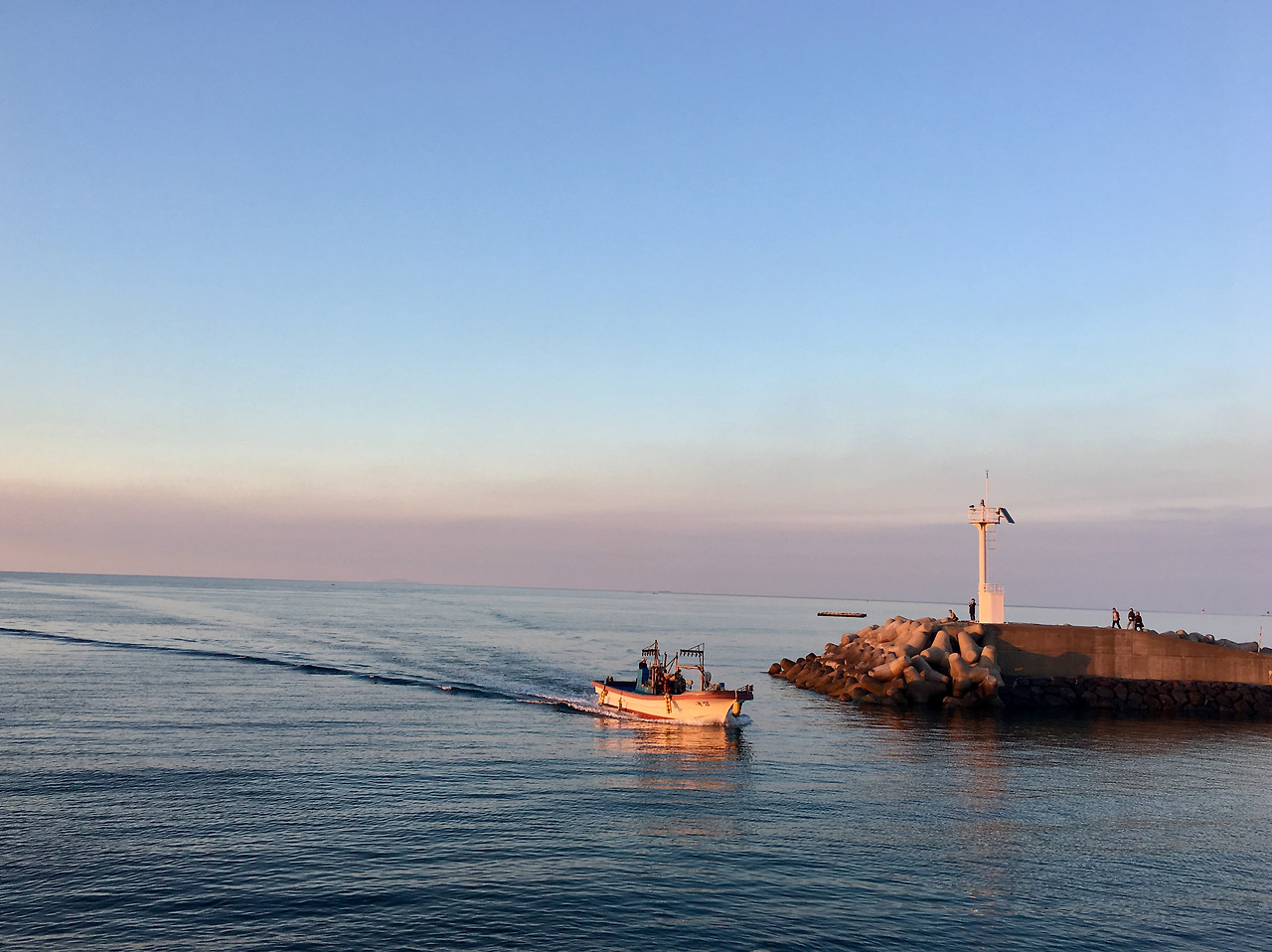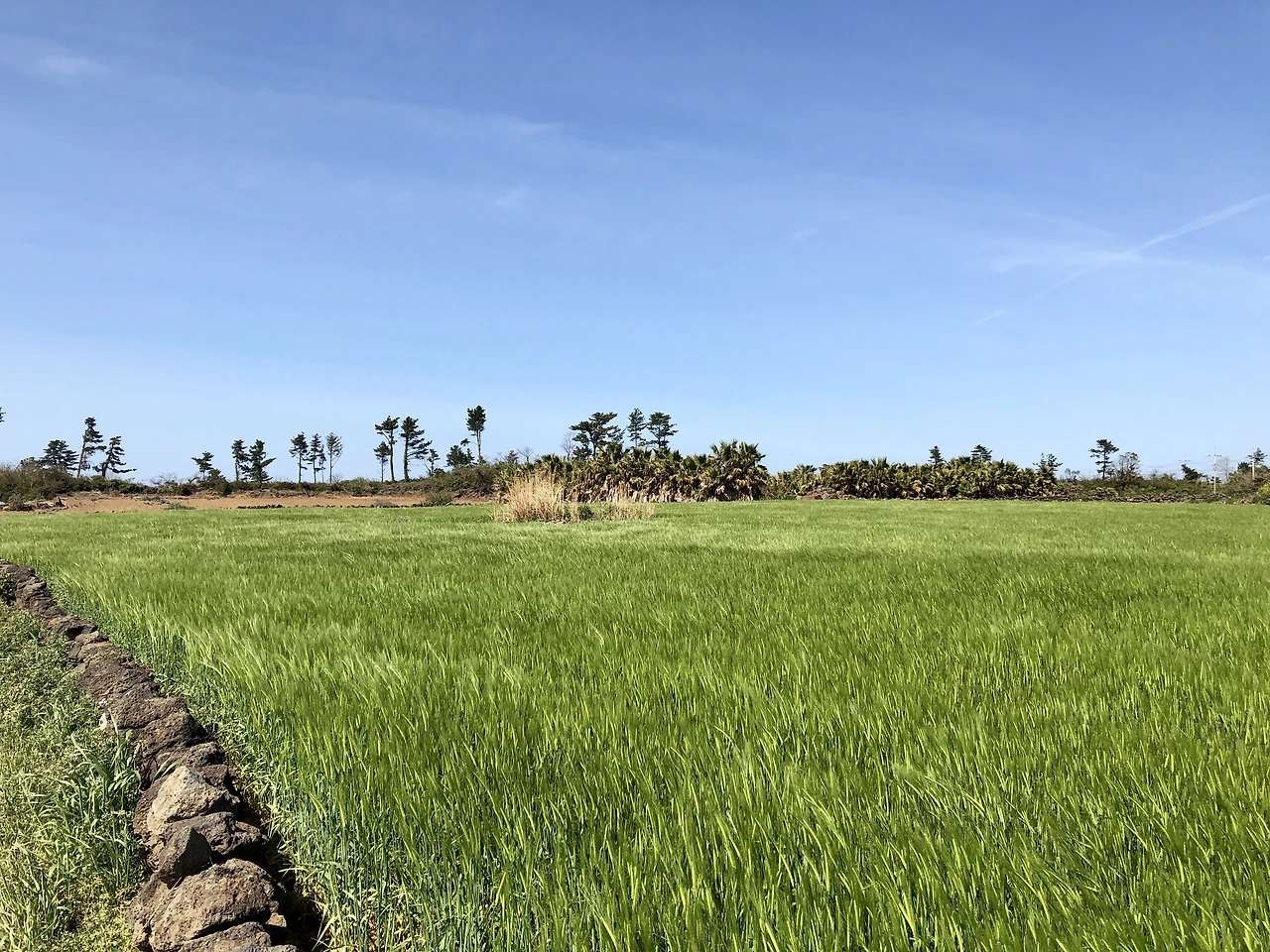 설렘과 기대를 한가득 실은 우리 차는 용담해안도로를 달리며 여정을 시작했고, 나의 첫 제주 여행은 처음부터 끝까지 ‘평화로움’ 그 자체였다. 마음 가는 곳 어디든 차를 멈춰 세우고 걷거나 쉬었다. 밭과 밭의 경계를 이루는 거무스름한 돌로 나지막이 쌓아 올린 밭담과 눈이 시리도록 선명한 초록 밭의 쨍한 대비, 밭담길 따라 이어지는 에메랄드 빛 바다, 고깃배가 드나드는 작은 항구에서 뜻하지 않게 만난 황금빛 노을이며, 평대리 어느 방파제 둑에 앉아 멍하니 바라본 하늘, 풍력발전기가 줄지어 서 있는 월정리 해변 근처 벤치 몇 개가 덩그러니 놓여있는 작은 공원까지.