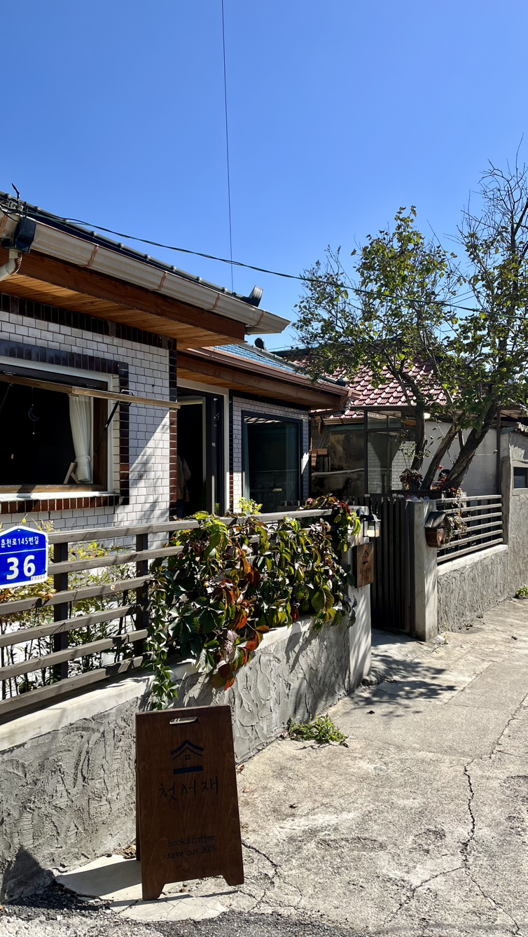 날씨가 기가 막히게 청명했던 가을 주말, 남춘천역에 내리자마자 코끝을 스치는 차갑고 시원한 공기를 가로지르며 우리의 단골 산책 코스인 공지천을 따라 천천히 걷기 시작했다. 마침 점심시간을 딱 맞춰 도착하여 미리 정해 둔 식당에서 가볍게 배를 채우고 커피 한 잔을 테이크 아웃해서 나오는데 강원대 정문 너머 언뜻 보이는 교정에 단풍이 한창이었다. 교정을 한 바퀴 돌며 가을 정취에 흠뻑 빠진 상태로 쉬엄쉬엄 걸어서 도착한 육림고개, 그리고 첫서재.