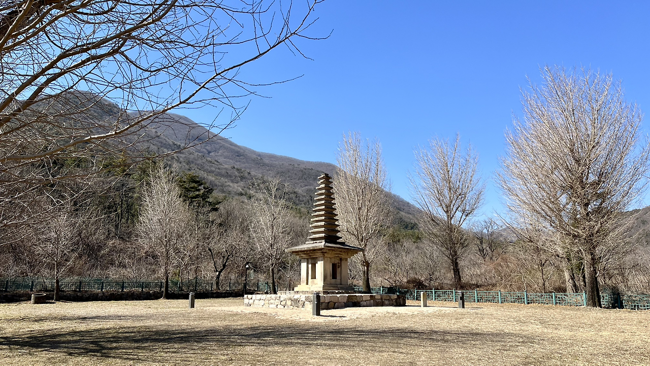 우선, 정말 아무도 없다는 사실에 놀랐고(국보가 있는 곳인데 주차장이 따로 없다.), 근처에 차 한 대를 댈 수 있는, 다들 으레 여기다가 주차한 듯 평평해진 모서리 공간에 주차하고 내리는 순간 눈앞에 펼쳐진 위엄 있는 탑의 모습. 아…