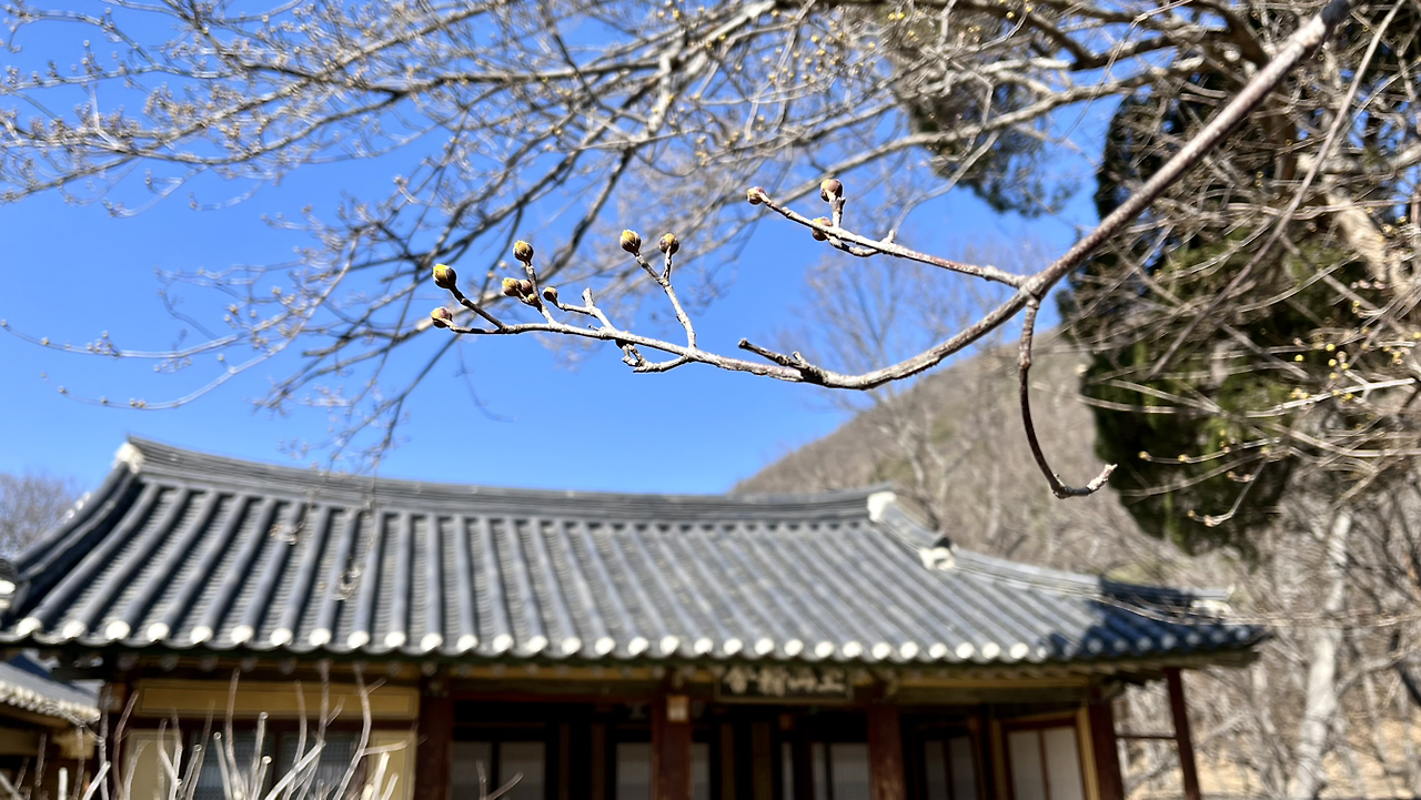 그리고 천천히 돌아 나오는 길, 산수유나무에 꽃봉오리가 맺힌 것을 보았다. 겨울의 끄트머리인 2월의 마지막 주말, 여기는 벌써 봄을 시작하는구나.