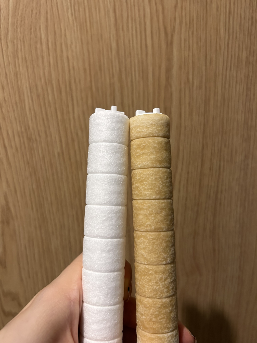 얼마 전 이사를 하며 샤워필터 속 필터를 바꿨다. 동그란 패드는 딱 6개월 사용했고, 긴 필터는 약 3개월 정도 된 상태이다. 그리고 옆의 알갱이들은 필터에 붙어있던 석회가루이다. 세면대나 주방 싱크대에는 정수필터를 별도로 설치하지 않았는데 다시 한번 설치를 고민하고 있다. 필터를 설치하지 않은 세면대도 샤워기와 별다를 것 없는 투명한 색의 물이 나오던데.. 그 투명한 물속에 저런 석회가루를 숨겨두었다니 꽤나 괘씸하군.