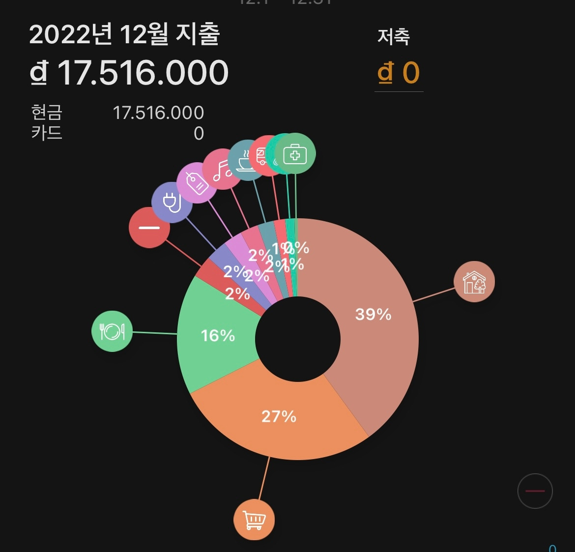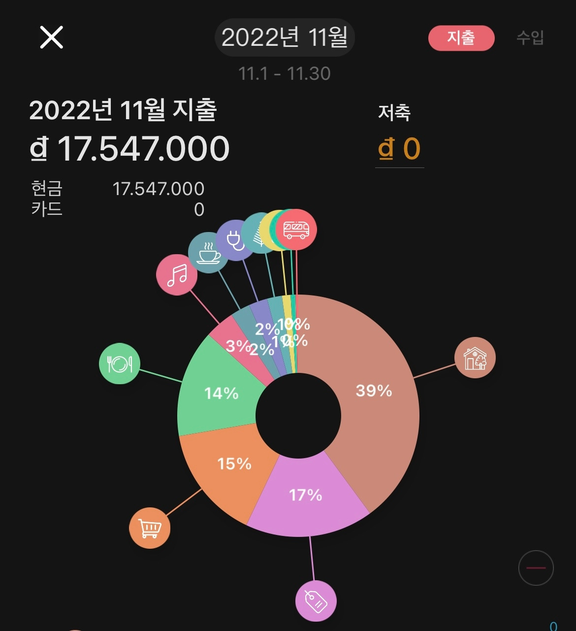 베트남이 한국에 비하면 물가가 저렴한 것은 분명하지만, 본인이 어떻게 소비하느냐에 따라 생활비가 비슷하게 나올 수도 있다. 내 지난 몇 달간의 지출내역을 보니 매달 월세를 포함해 대략 구십만 원 정도를 지출하는 듯하다. (한화 통장에서 빠져나가는 보험료, 적금 제외 순수 생활비) 되도록이면 절약하고자 노력하지만 그렇다고 스스로를 불쌍하게 만들고 싶지는 않다. 그래서 할인쿠폰이나 마트 행사제품을 야무지게 활용하고 가까운 거리는 그랩 차량을 부르는 대신 걸어 다니거나 그랩 오토바이를 이용한다. 그리고 그렇게 아낀 돈으로 카페를 가고 집을 더 안락하게 꾸미는 데 사용한다. 이를테면 테이블보나 소파커버 구매하기. 월 생활비는 한국에서 살 때보다 줄어들었지만, 그 대신 한 번 한국에 가면 돈을 엄청나게 쓰게 되기 때문에.. 솔직히 연간 소비액만 놓고 본다면 크게 줄어든 건 없는 것 같다.