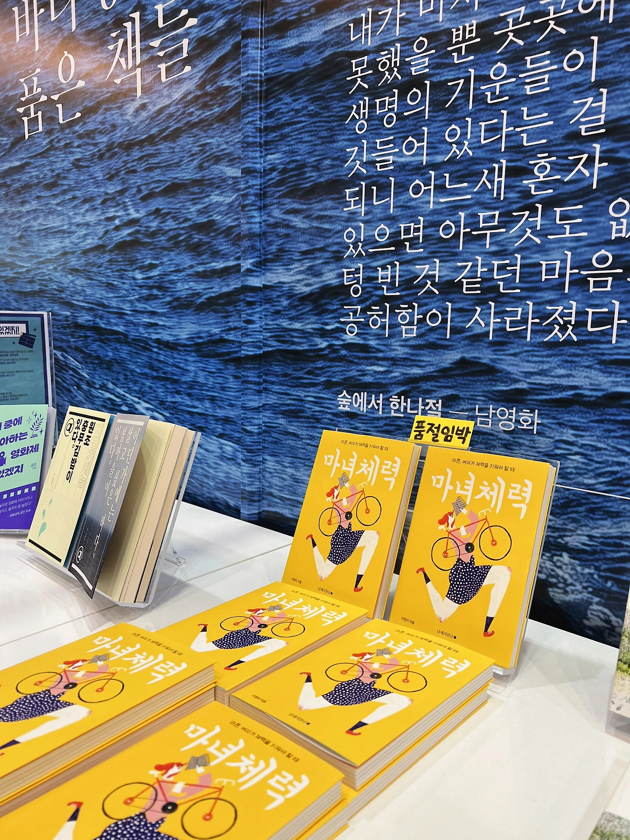 어딘가에는 살고 싶은 바다, 섬마을이 있다 표지와 함께 푸르른 바다 풍경이 눈 앞에 나타난다 싶더니 그곳이 바로 남해의 봄날 부스였다.