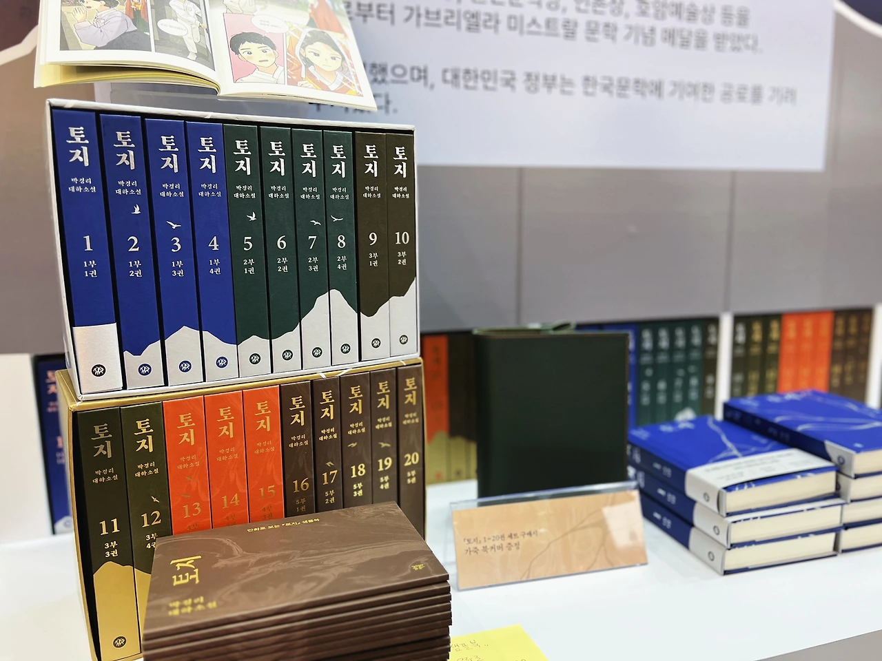 자그마치 박경리 토지 마케팅을 할 수 있는 다산책방의 위엄. 메인 디스플레이는 토지 하드커버 전질, 그 옆에는 박경리 작가의 친필 원고와 집필 도구, 부스 방문객에게 나눠주는 홍보물은 토지 만화... 와... (기절)