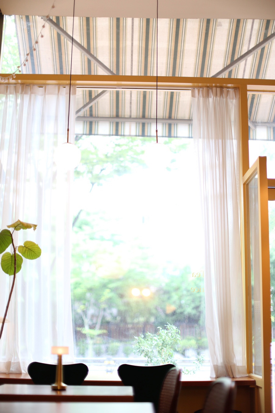 화사하면서도 차분한 버터크림 옐로우. 매장 곳곳에 놓인 푸릇푸릇한 식물 화분들. 커다란 전면창을 통해 들어오는 그날그날의 햇빛. 은은하게 일정 조도를 유지해주는 조명 도구들.