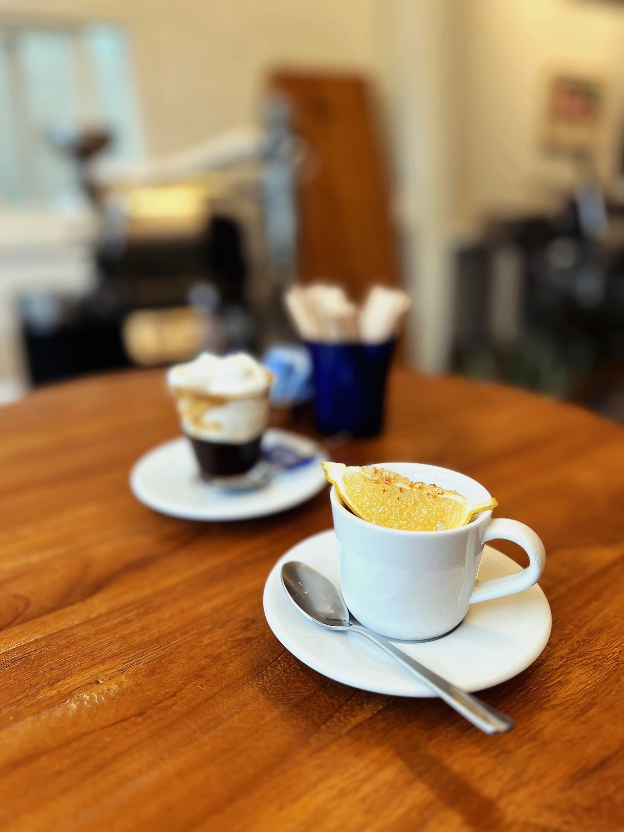 사실 에스프레소잔은 단지 크기만 작은 게 아니다. 묵직하게 농축된 액체가 퍼지지 않고 좁게 고여서 향을 집중적으로 피워내는 도구이기도 하거든. 이걸 괜히 인심 쓴다고 크고 넙적한 라떼잔에 담아서 냈다고 상상해보자... 아니, 그런 상상은 하지 말고 부디 에스프레소는 에스프레소잔에 마시길.