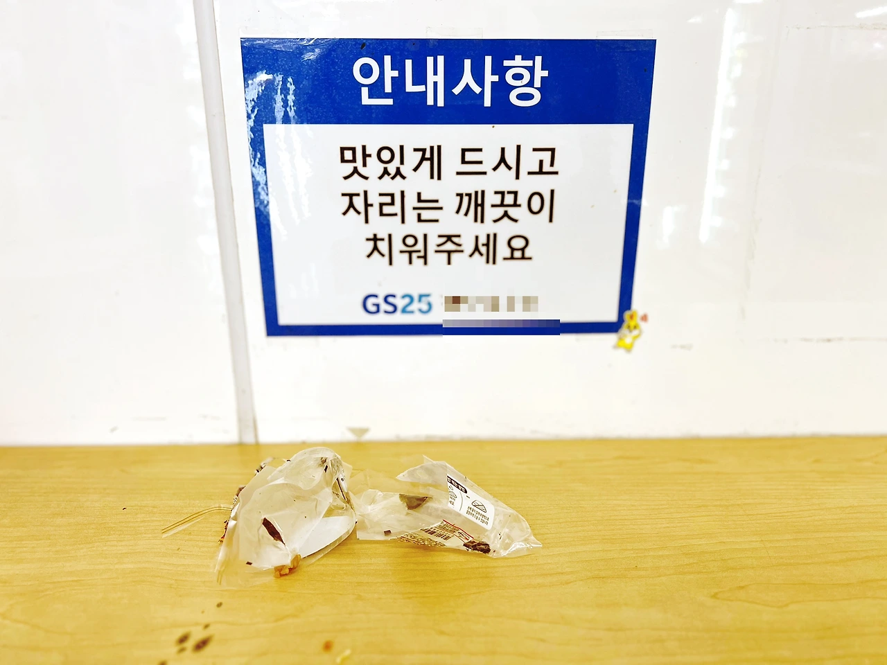 공지는 점장이 질러놓고, 마무리는 알바생이 할 수밖에 없는 구조. ‘깨끗이 치워주세요’라고 해서 ‘깨끗이 치우고’ 싶지만 ‘깨끗이 치울 수 없는’ 고객은 중간에서 멀뚱멀뚱. 달리 할 게 없으니 정말 쓰레기‘만’ 버리고 나서게 된다. 거 참 찜찜하네.