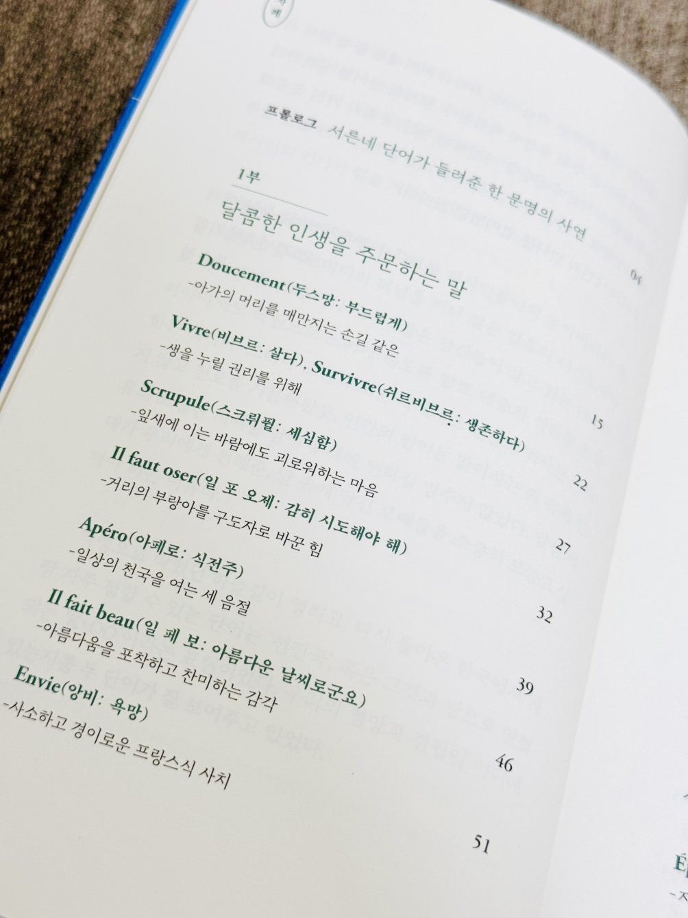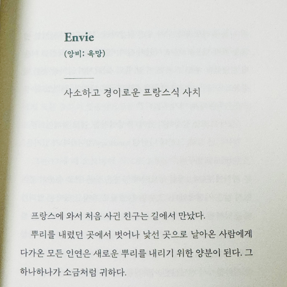 프랑스어의, 프랑스어만의 표현들을 하나씩 포착해서 그 안에 담긴 역사, 생각, 문화를 한조각씩 담아낸다. 프랑스에서 살았던 오래된 기억을 가지고 있고, 서툴게나마 프랑스어를 약간 구사하며, 언어를 축으로 하는 담론에 지대한 관심이 있으며, 에세이를 좋아하는 입장에서 사지 않을 수가 없는 책.