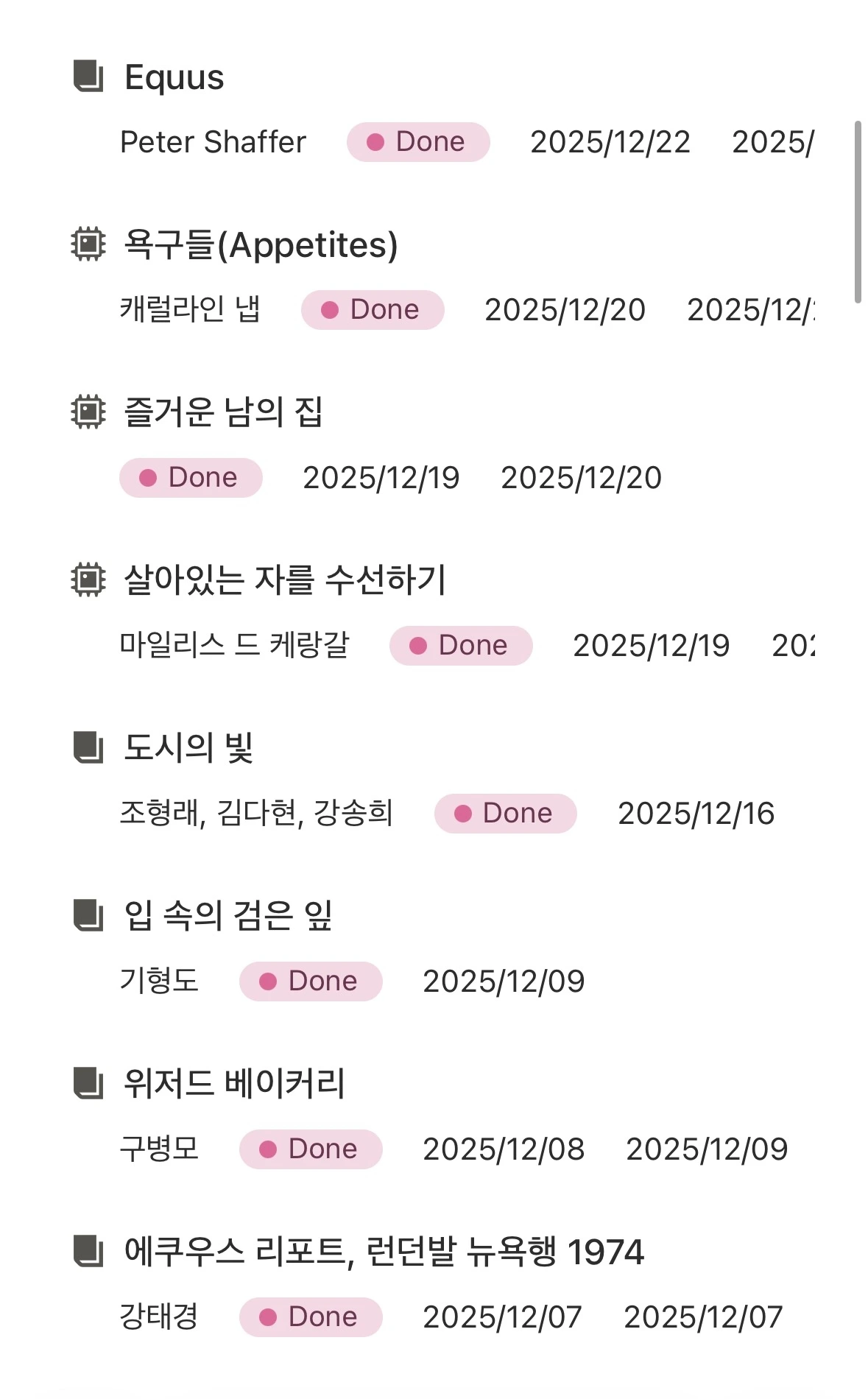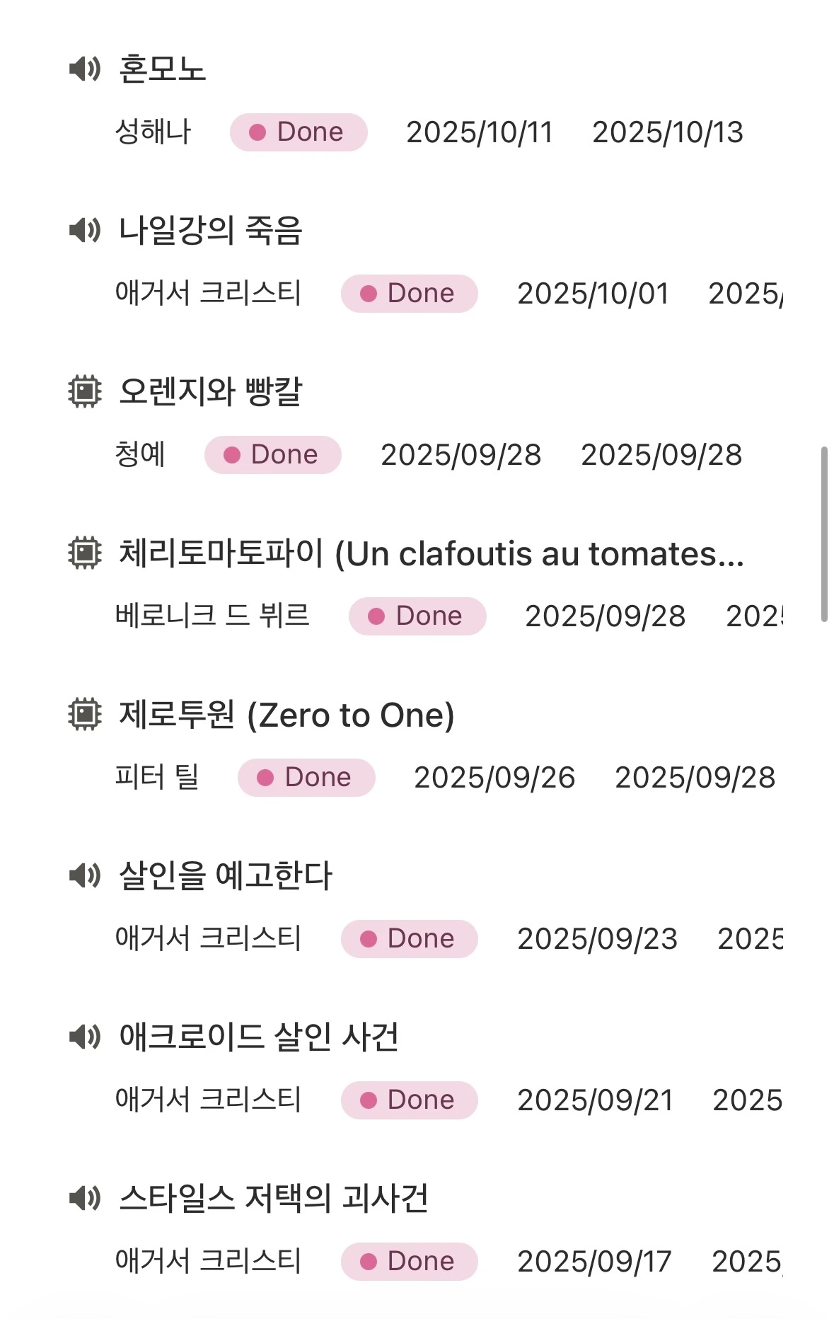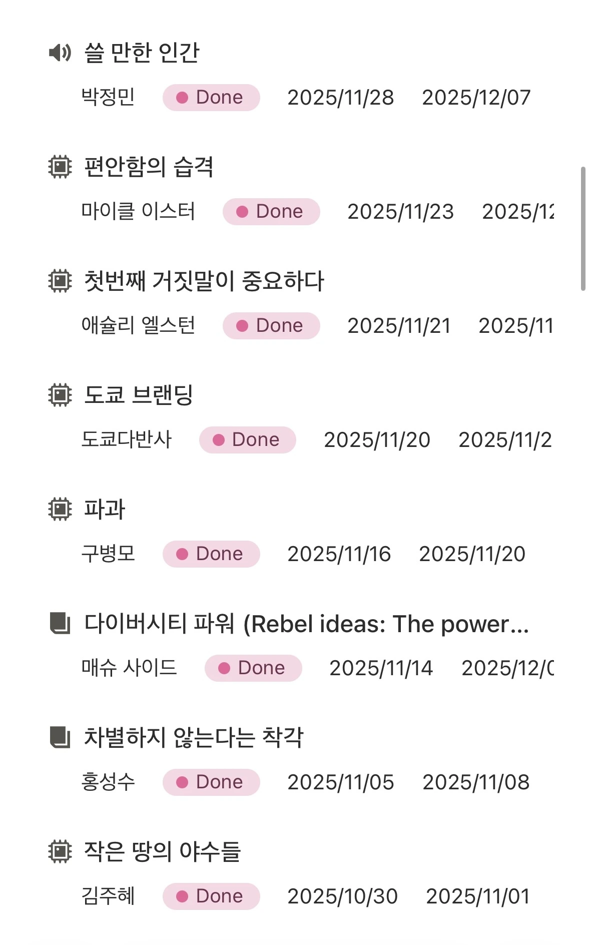 다 읽은 책에 대한 소감을 남기는 것도 좋지만 중도 하차한 책들 또한 왜, 어떤 요소 때문이었는지, 기억을 남기고 싶다. 그래서 노션 카테고리에 Done/In Progress 외에 Dropped도 추가해 두었다.