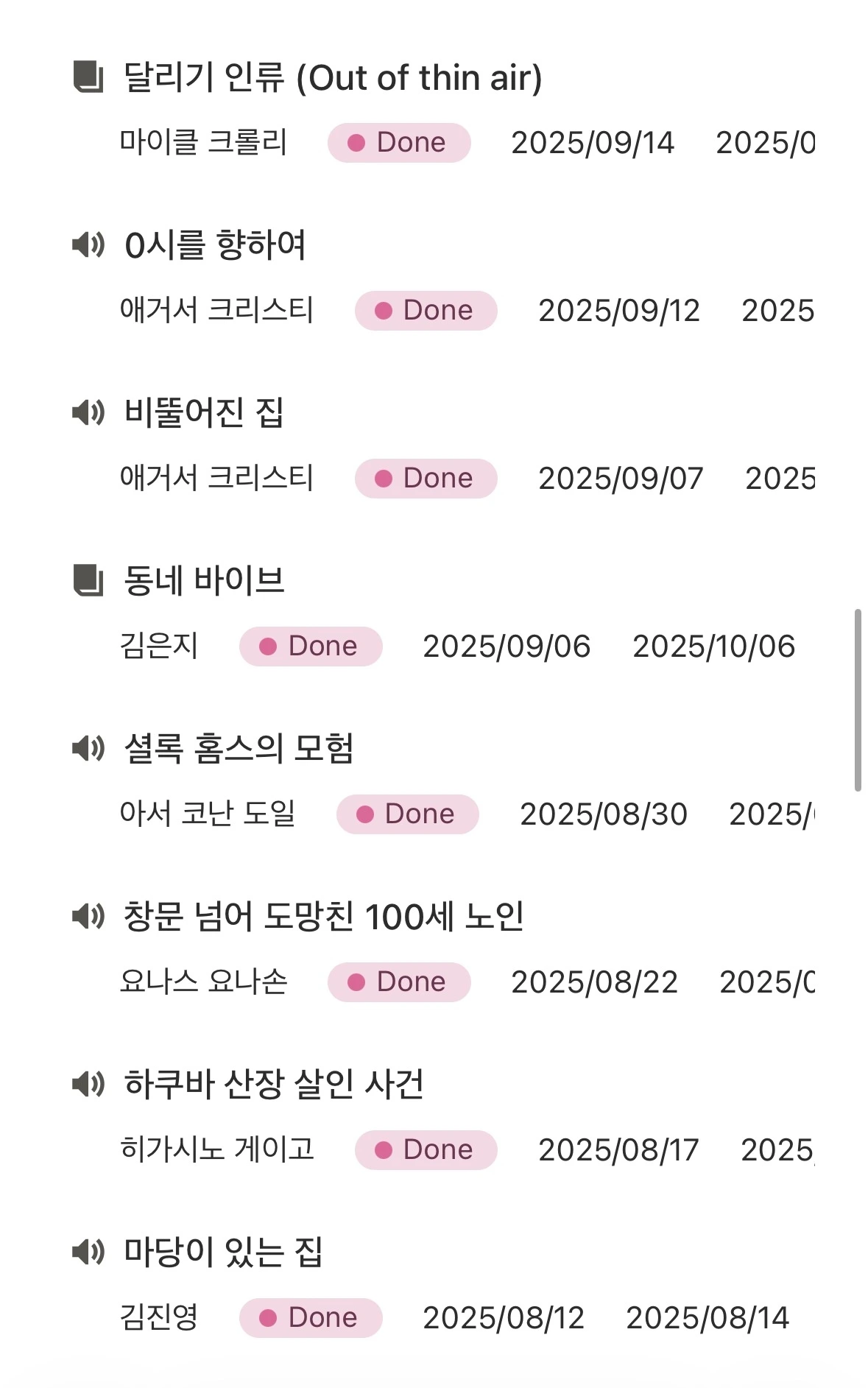 그저 완독을 위한, 그러니까 해치우기 위한 독서 말고, 차분하고 진중하고 몰입되는 그런 독서 경험을 하고 싶다. 작품마다 더 꼭꼭 씹어서 잘 소화를 시키고, 한 작품을 다양한 형태나 버전으로 읽고 비교해 보는 희열도 누리면서. 그리고 아마 킬링타임 오디오북은 좀 줄이고 그 자리에 좋은 팟캐스트를 넣을 예정. 요즘 밀리의 서재에서 운영하는 리딩 케미스트리 정주행에 푹 빠져있지 뭐야.
