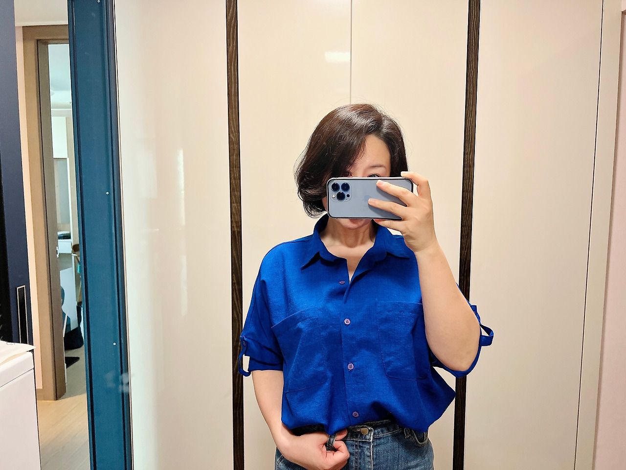 이렇게 차려입고 미용실에 갔더니 담당 원장님이 말한다. 블루가 정말 잘 어울린다고. 피부가 단박에 환해 보인다고. 사실 어시스트 스탭도 말했다. 오늘 피부 좋아 보이신다고. (그냥 민낯으로 갔는디유...?)
