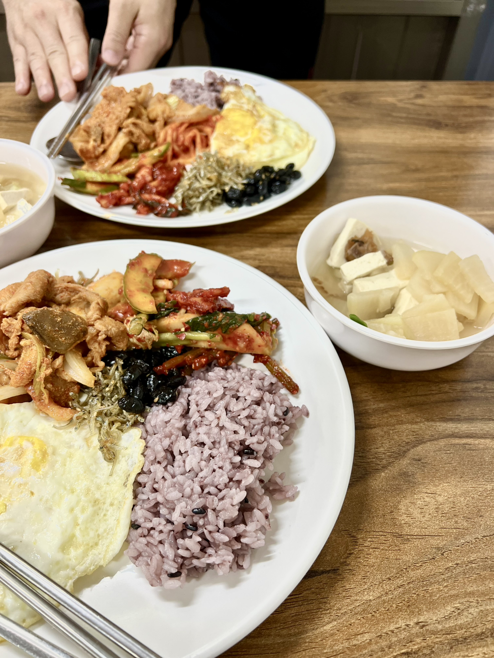 점심은 동네 시장 밥집에서 밥과 반찬 한 접시