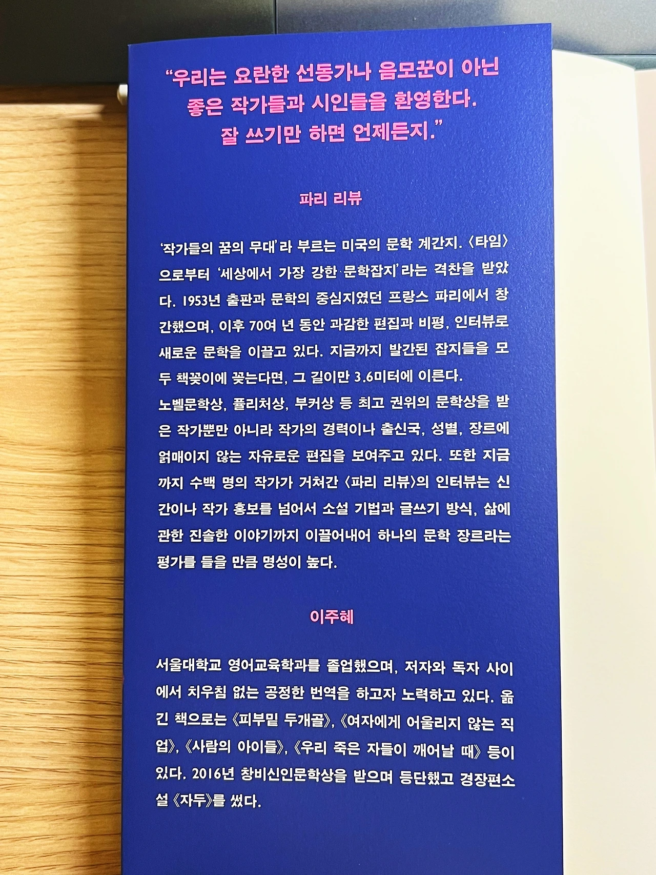 책을 읽기 이전에는 엄청난 기대까지는 아니어도 호감 어린 호기심을 가지고 있었다. 추천이 아니었더라면 몰랐을 책이지만 좋은 취향의 큐레이션의 가이드를 받아서 경험과 취향의 범주를 넓히는 계기가 되지 않을까, 라는 생각.