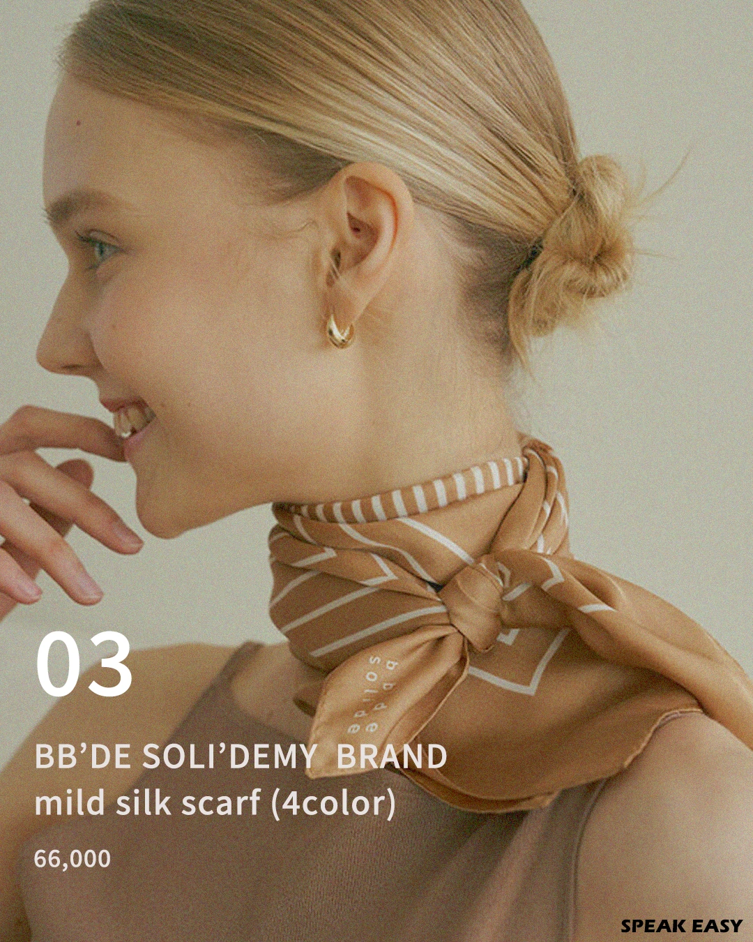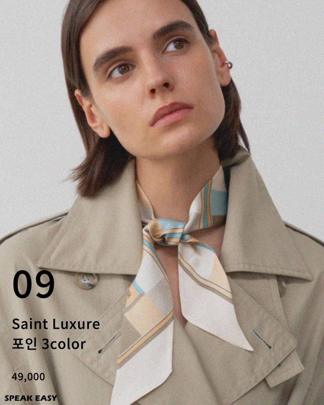 스카프는 실크 재질로 되어 있어 고급스러운 분위기를 내기에 좋습니다. 바람이 부는 가을에 스카프도 함께 날리면 걸을 때 기분도 좋아지죠!