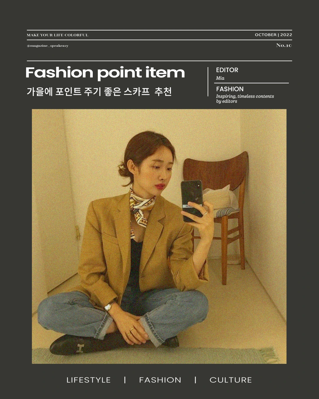 그중 가을에 가장 잘 어울리는 포인트 아이템은 무엇일까요? 저는 스카프라고 생각합니다.