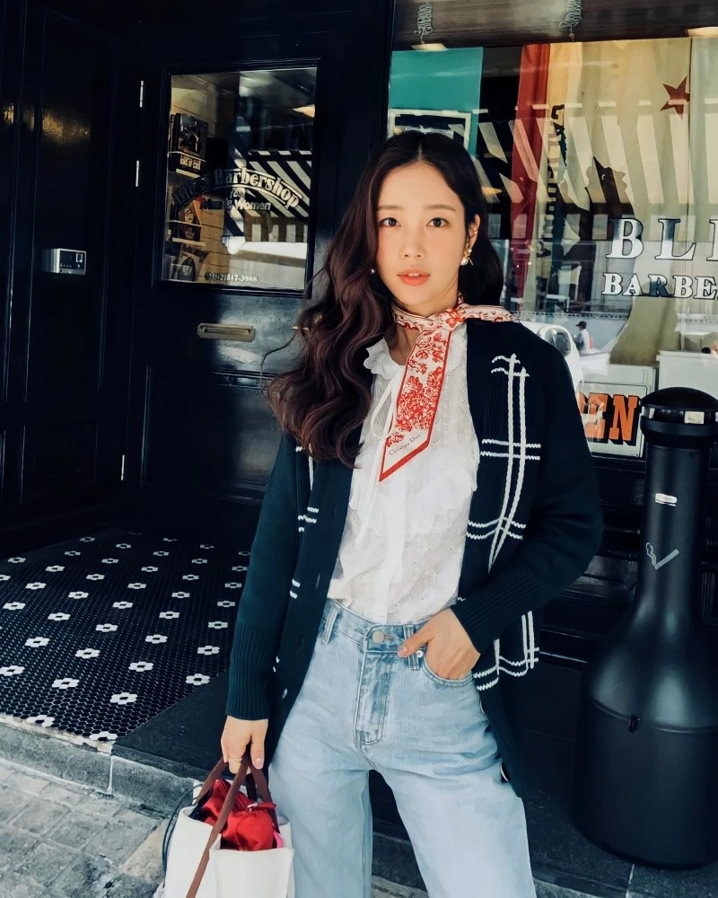 트윌리 스카프나 스카프로 포인트를 준 연예인들의 사복 코디를 살펴볼까요?
