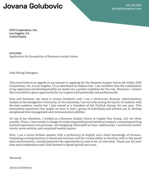 누구에게 쓰는지 명시 (이름을 모른다면 Dear. Hiring Manager 정도로 시작)