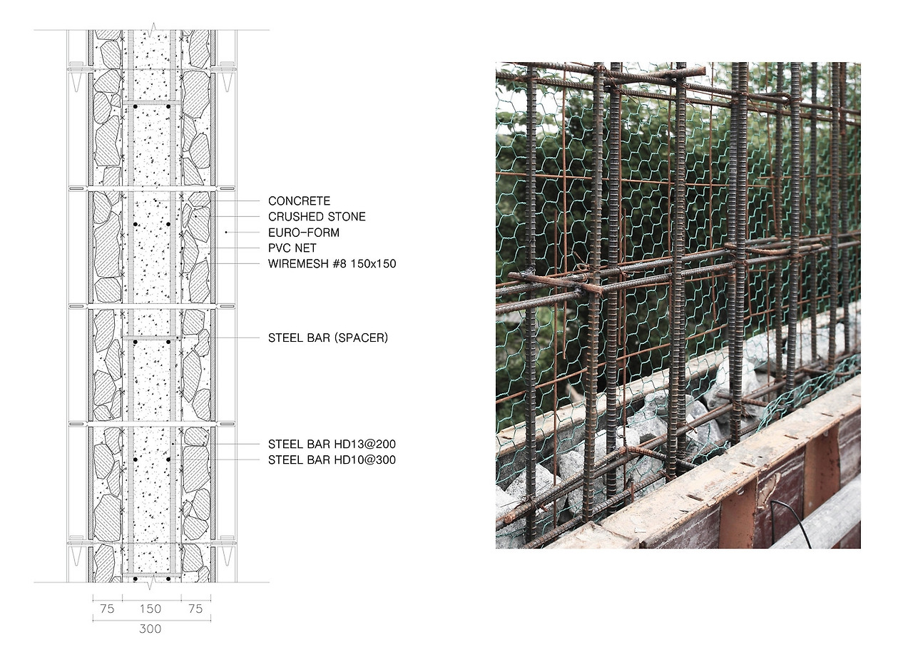 The broken stones from the tunnel construction and rocks from Won-Am-ri harmonize extremely well, creating the 'Garden of Rock'. This is where the name of the Museum, Bauzium, comes from. Over time, the wind will green the garden, bringing soil and planting seeds in to the cracks of the fence. This, we believe, is how to build