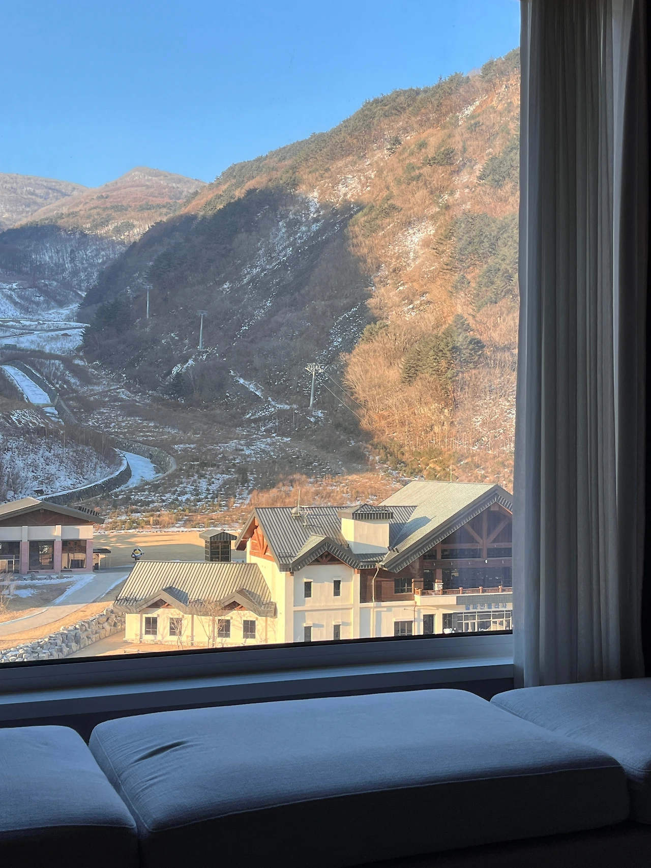 저녁에 실내 수영장에서 몇 바퀴 헤엄을 쳤다. 미온수로 유지되는 수영장 물은 마음이 편해지고, 유리창 너머 보이는 산세가 마치 자연 속 수영장에 있는 듯했다. 수영 후 야외 자쿠지에서 따뜻한 물에 몸을 맡기며 하늘을 올려다보니, 날씨만 좋았더라면 별이 쏟아지는 광경을 목격할 수도 있겠단 생각이 들었다.