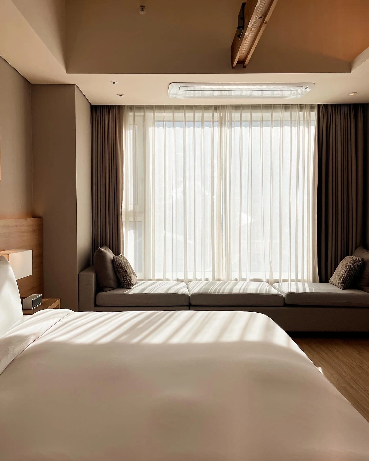 나무와 돌 등 자연 소재를 더해 디자인했으며 가리왕산, 두타산, 오대천으로 이어지는 탁 트인 뷰를 갖춘 이 공간은 과시보다는 본질을 추구한다. 화려한 장식 대신 자연의 질감을, 인공적 완벽함 대신 계절의 변화를 받아들인다.