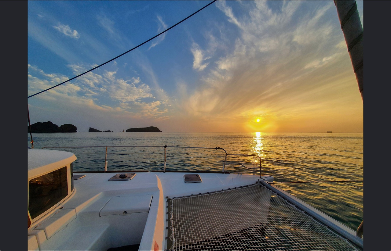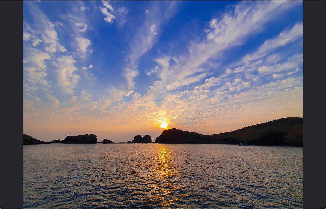 요트 위 바다 한 가운데에서 제주도의 아름다운 일몰을 바라보며 여유로운 시간을 보냈다.