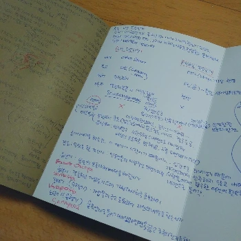 이야기는 칸트로 이어졌습니다. 서양철학의 대부가 고대 그리스 3인방(소크라테스, 플라톤, 아리스토텔레스)이라면 중간 보스는 합리론과 경험론을 관념론으로 재편한 칸트라 합니다. 『순수 이성 비판』을 논하는 대신 채사장님은 그림을 그려 물자체·감각기관·인식 형식·현상 세계를 설명했고, 의식의 초월성·현대성·재현성을 말하며 관념론의 세계로 청중을 데려갔습니다. 저는 『열한 계단』의 뒷 속지를 펼쳐 빼곡히 필기를 했지요. 강연에서 못다 말한 내용은 12월에 나올 신간을 참고하라 하셨습니다. 기다리던 신간 소식! 기뻤습니다.