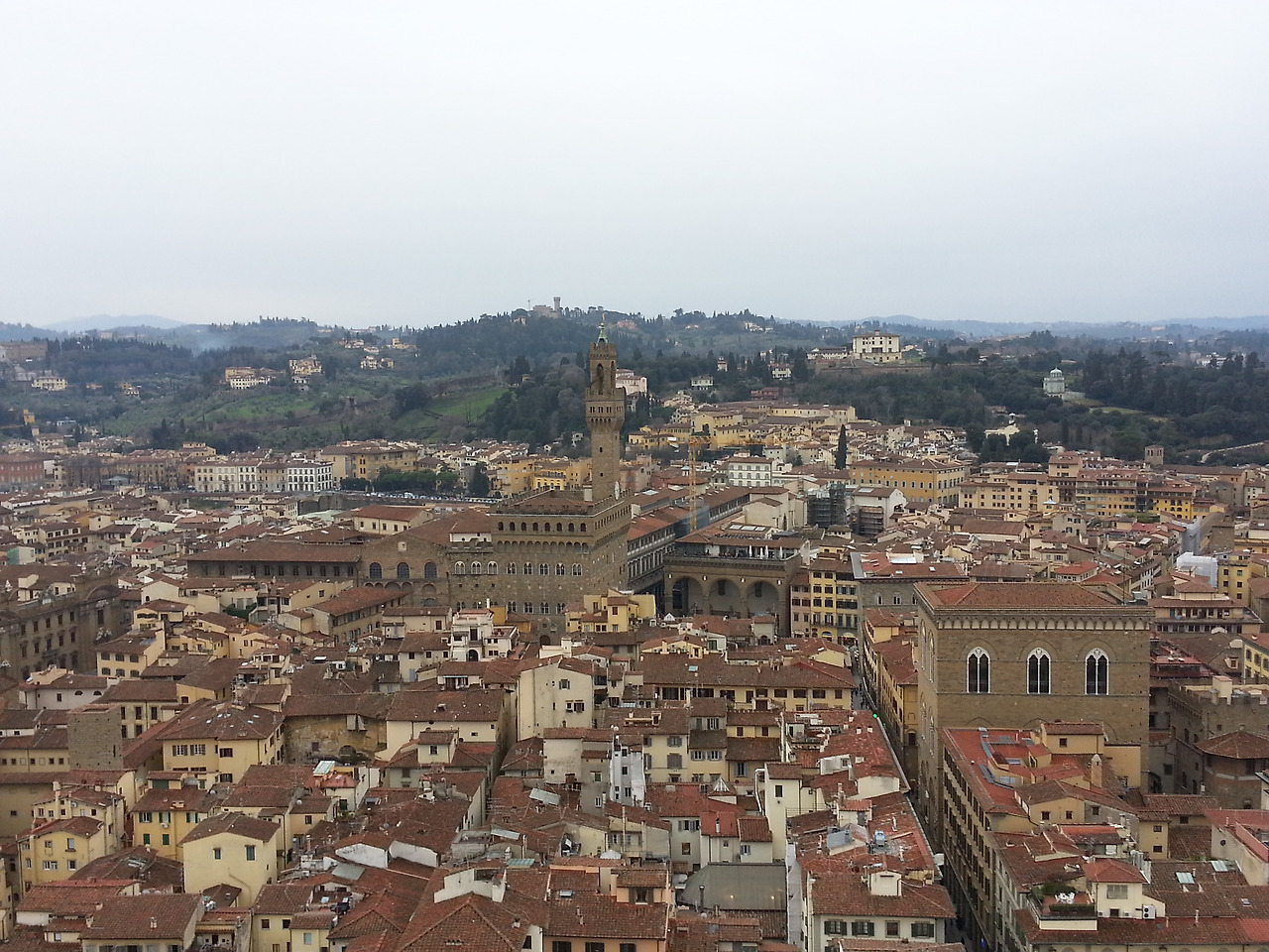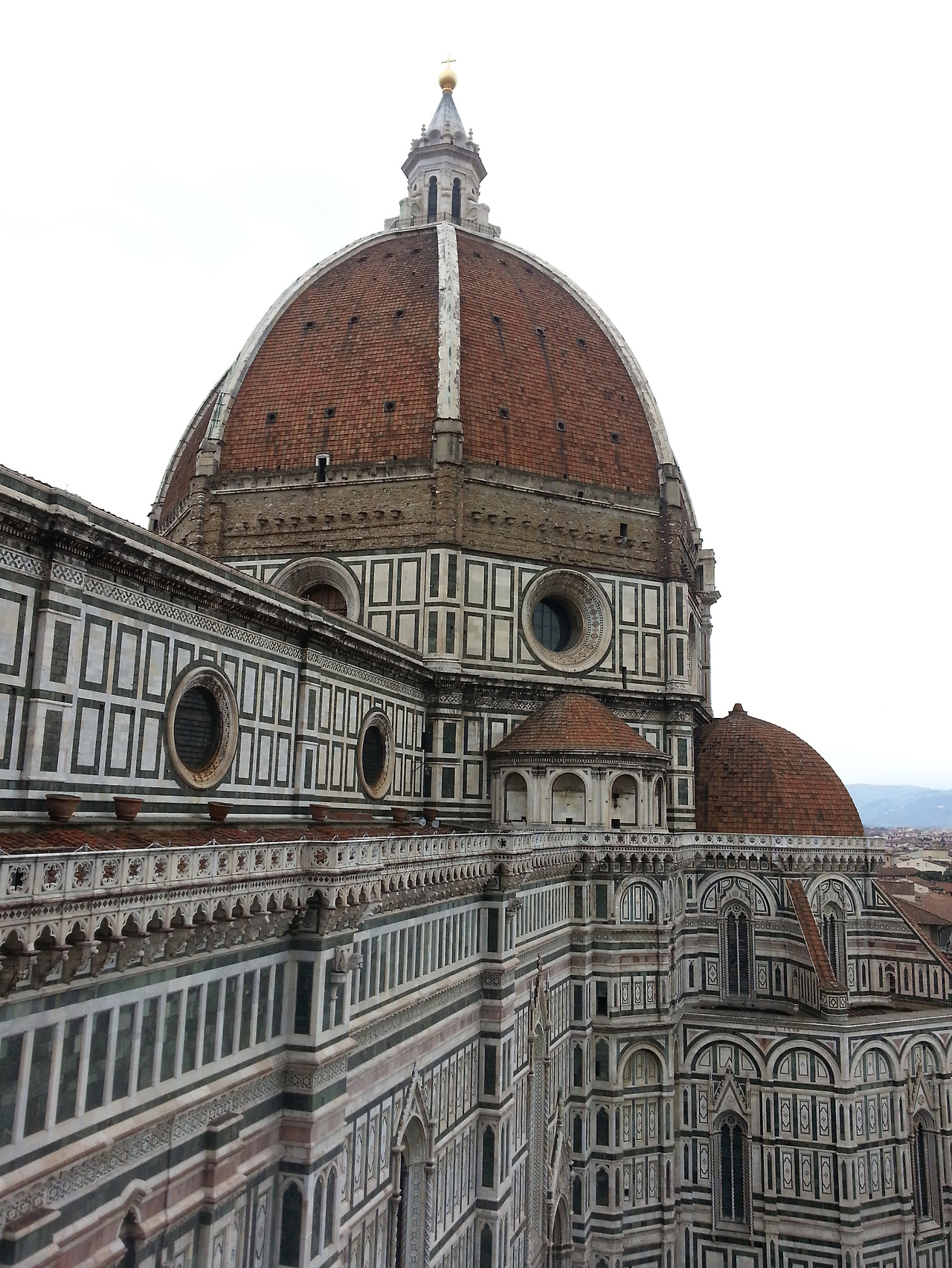 18일 월요일: 아침 먹고 짐가방을 로비에 맡긴 후 드디어 피렌체에 피날레를 장식하러 두오모 돔으로 향했다. 460개의 계단과 갈수록 좁고 가팔라지는 경사를 거쳐 꼭대기에 올랐다. 어제 맞으편 종이 있는 탑에 갔을 때 거의 돔 높이만 했는데 돔에서 내려다보는 피렌체는 더 예쁘고 아름다웠다. 하지만 중간중간 우리 눈엔 너무나 잘 띄는 한글 낙서들이 조금 창피하고 화가 났다. 점심은 첫날 저녁으로 갔던 식당에 다시가 같은 토마토 모차렐라 샐러드에 피자 한판, 같은 와인과 같은 디저트를 먹었다. 지금은 점심 후 다시 호텔로 돌아와 6층 꼭대기 테라스에서 두오모를 바라보며 카푸치노를 마시고 있다. 이렇게 여행기도 쓰면서..ㅎ 성훈이는 술기운에 엄청 졸리다고 이 불편한 의자에서 내 어깨에 기대 졸고 있다. 이제 두 시간 정도 후면 로마행 기차를 타러 출발해야 한다. 난 비행기보다 오랜만에 기차에 더 들떠있다..
