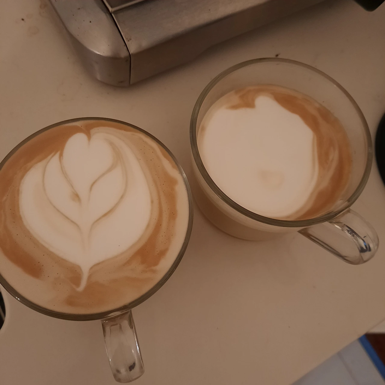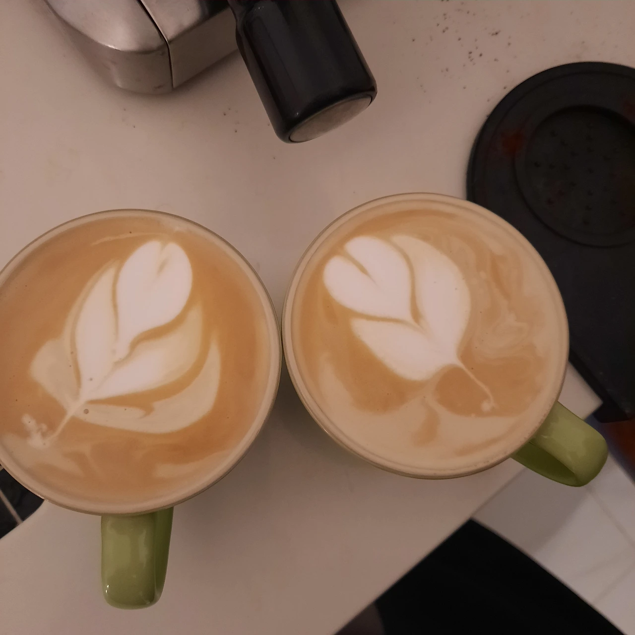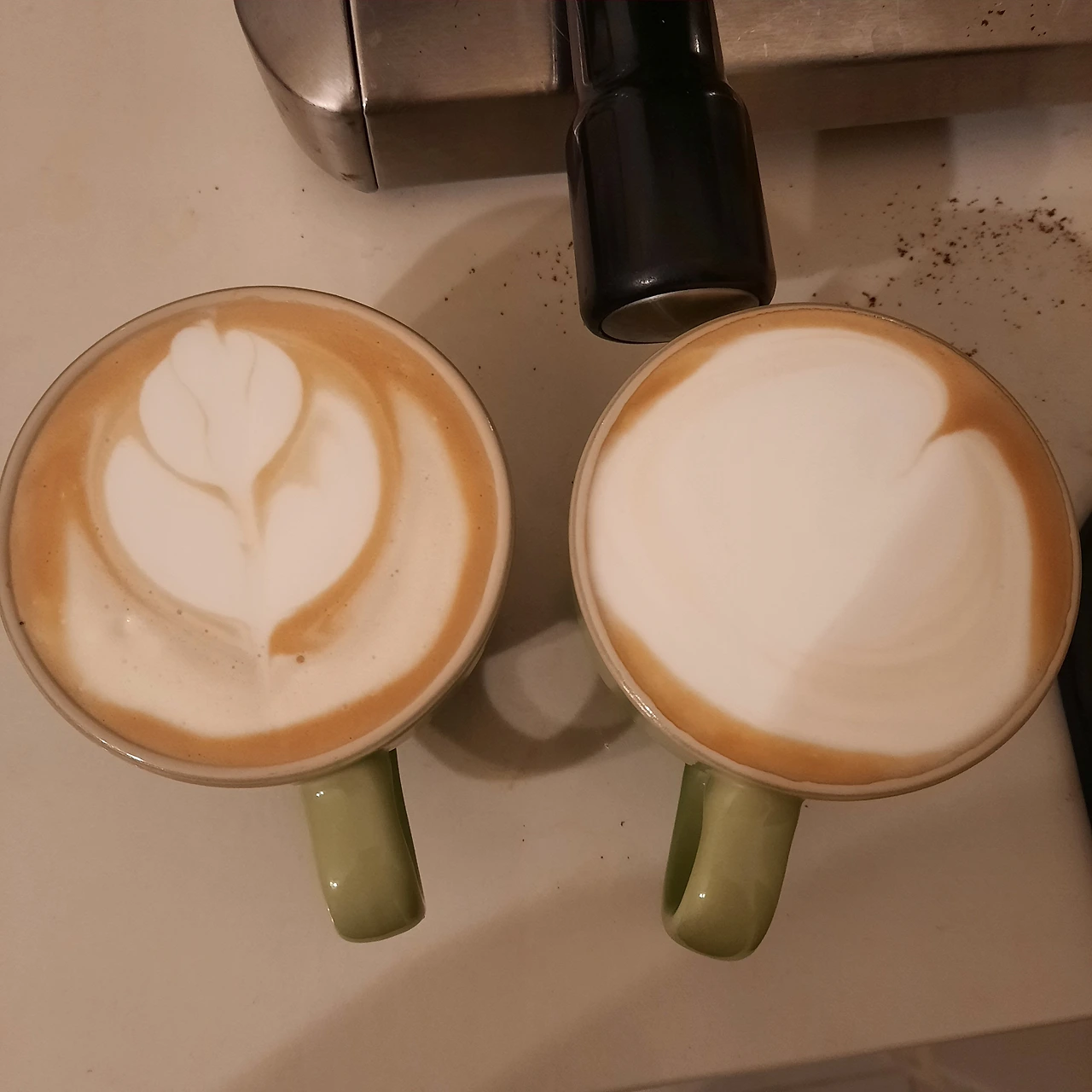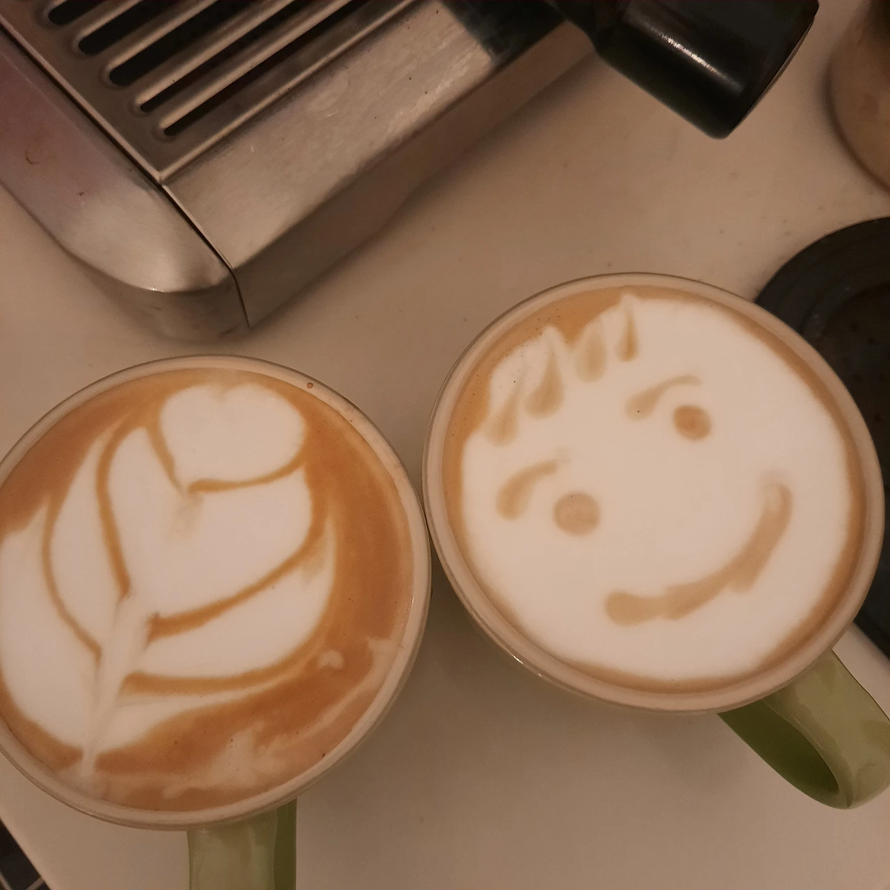 돈 아껴본다고 커피빈을 잠시 끊은 적도 있으나 요즘은 남편을 설득해서 이 정도는 먹고살자며 다시 커피를 마시고 있다. 그래도 예전에 더블 에스프레소를 각각 내렸다면, 이젠 한 번에 잔 두 개를 놓고 내린다. 그리고 우유 거품기를 사용해 거품을 만들어 안 되는 라떼아트에 도전하고 있다.
