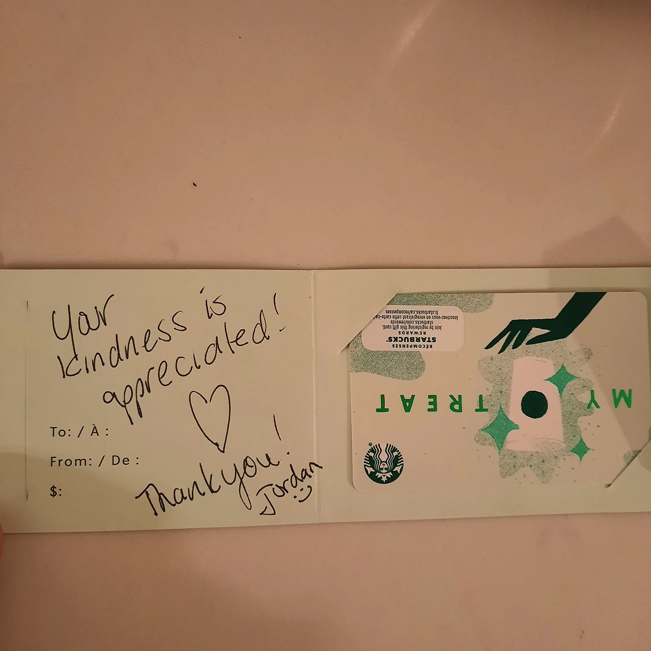 기대하지 않았는데 정말 고맙다면서 스타벅스 기프트카드를 전해 받았다. 그러지 않아도 되는데..라고 말은 했지만, 결국은 고맙게 받아왔다.
