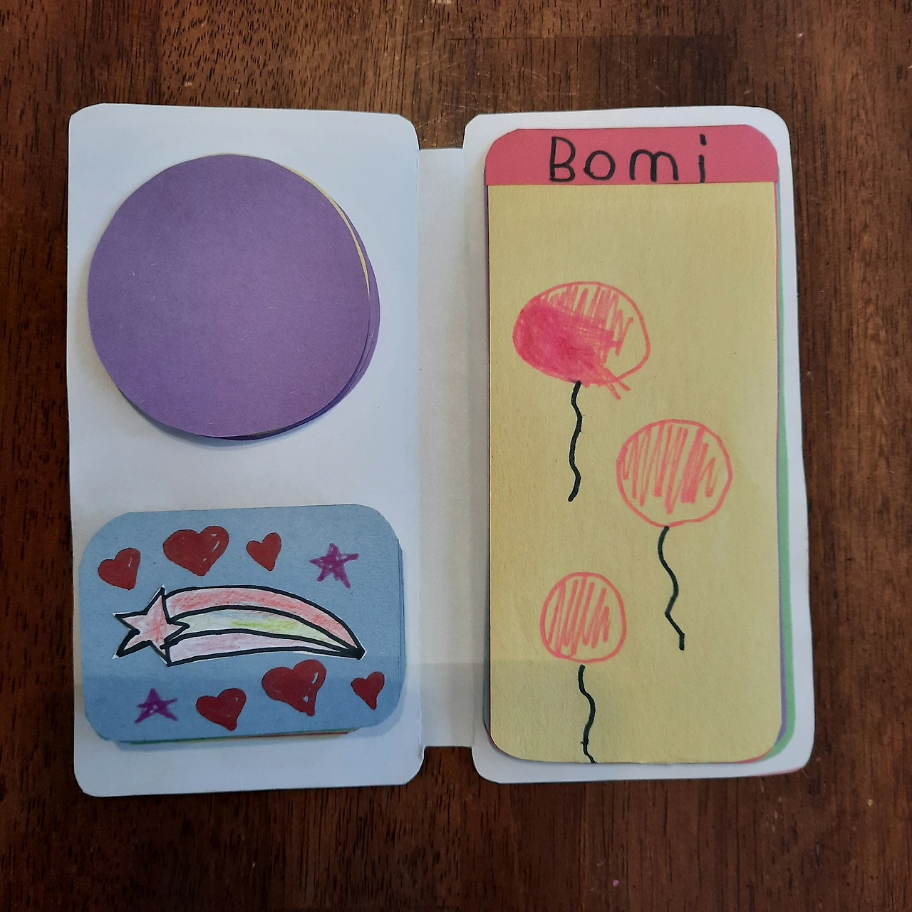 그렇게 해서 아이폰처럼 생긴 노트북을 만들었다. 한 시간 넘게 걸린 것 같은데 자르고 풀칠하고.. 애들이 엄청 좋아하니 보람은 된다.