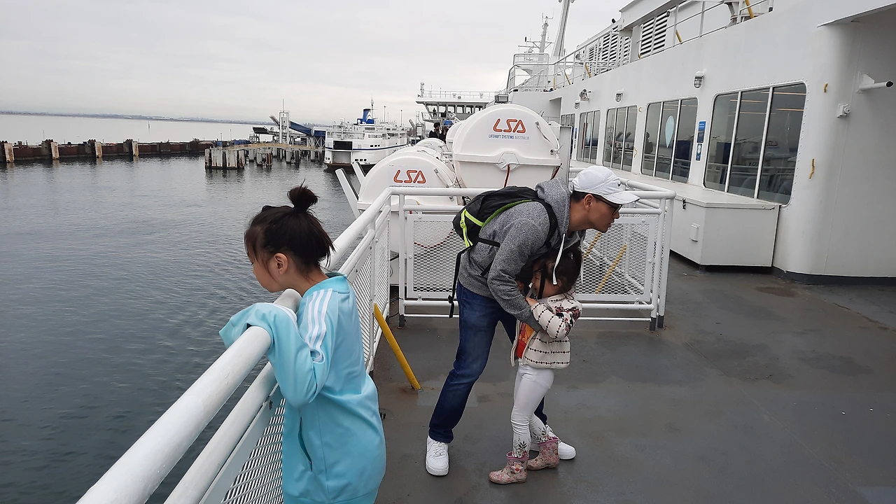 우린 지금 일박이일로 큰 배를 타고 빅토리아 섬으로 가고 있다. 집에서 항구까지 한 시간 반 걸려서 왔고, 45분을 기다린 후 차를 배에 싣고 이 배를 타고 또 한 시간 반 정도 가야 한다.