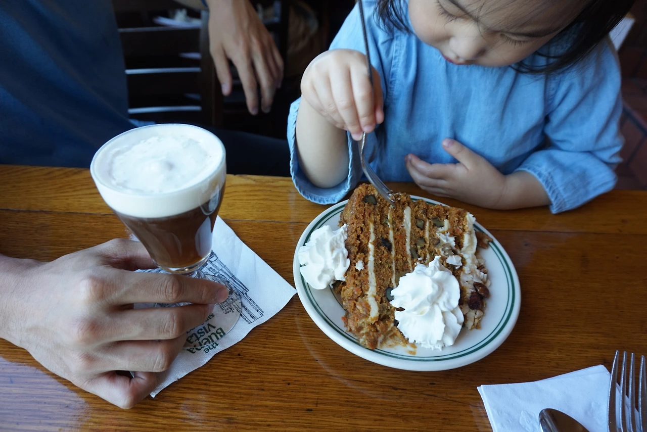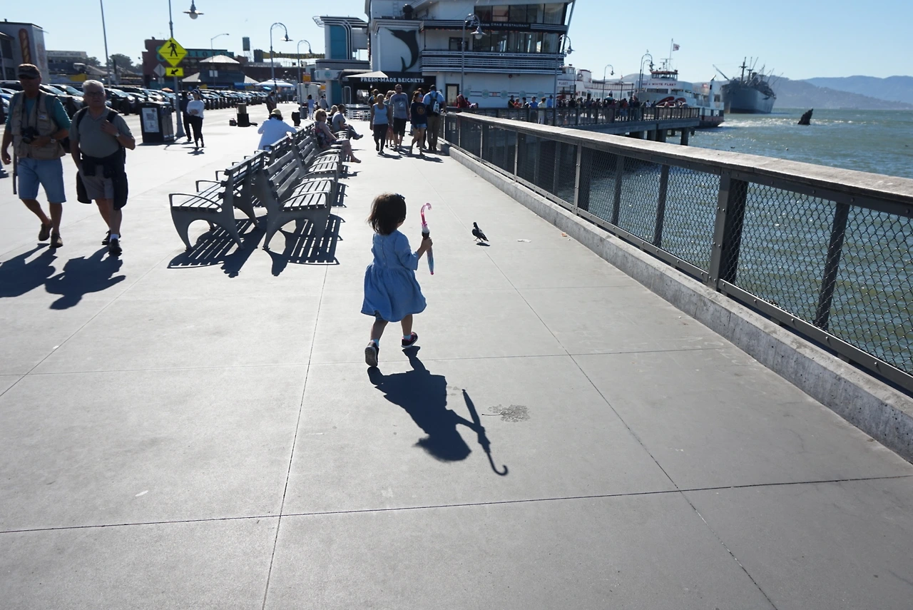 다리를 즐길 여유도 없이 중간에 포기할수 없어 무작정 열심히 갔다. 평상시면 진작에 쉬어가자고 주저 앉았을텐데, 나도 그바람에 더 힘을 낼수 있었다. 다리를 정신없이 건넌후에 보니, 서은이 입술이 파래지고 몸을 심하게 떨어 정말 기절하는줄 알고 크게 걱정했다. 얼른 애를 꺼내 꼭 안고 어디 들어갈 마땅한 장소를 찾았다. 근처 숙소가 있길래 식당에 들어가 몸을 좀 녹이면서 핫쵸코와 쿠키를 시켜줬다..휴..정말 뭔일 나는줄 알았다. 지금 생각해보니 아찔한 저체온증 증상 이였던거 같다. 더 나은 선택을 해주지 못한 후회는 지금 이 글을쓰는 일년이 더 지난 순간에도 속이 쓰리다. 이 자전거 투어 코스는 골든게이트를 지나 반대쪽 항구까지 가면, 거기서 배를 타고 이쪽 항구로 돌아오는 코스다. 자전거 빌릴때 돌아오는 배 티켓도 함께 준다. 다행히 기운을 차린 서은이는 돌아오는 배 안에서 내내 엘사 춤을 추면서 신나게 왔다.