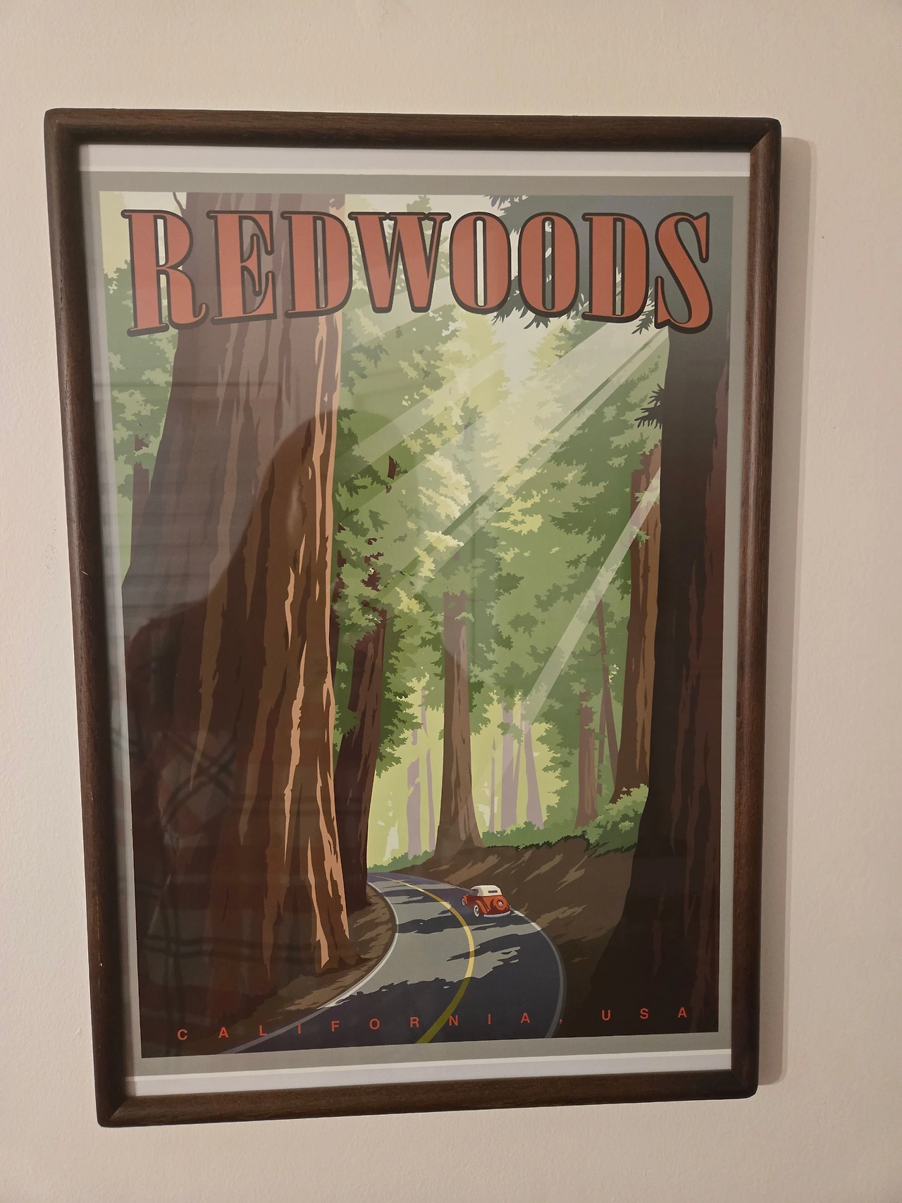 밤늦게 집으로 돌아와 다음날 바로 아이들은 학교 가고, 우리는 출근해서 피곤한 일주일을 보냈지만, 험볼트 Humboldt Redwood State Park visitor center에서 사 온 레드우드 포스터를 식탁 옆에 걸어두었으니 두고두고 여행을 추억하게 될 것 같다.